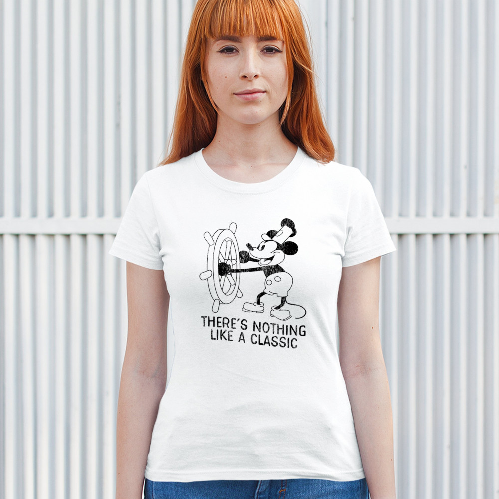 Embrace the magic of an American classic with our 'There is Nothing Like a Classic' tee, featuring Steamboat Willie. Paying homage to the iconic 1928 cartoon, this design is sure to inspire memories of family vacations and timeless traditions. Let the charm of this classic cartoon transport you to a simpler time.