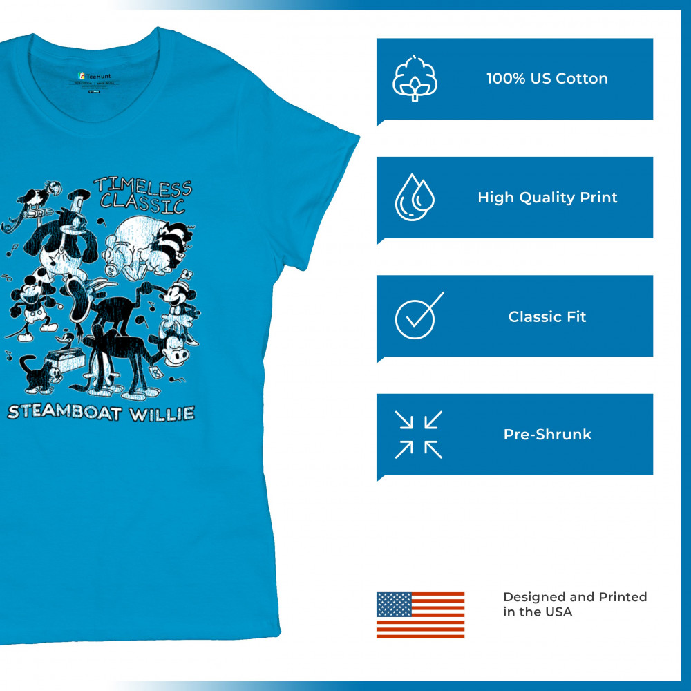 Experience the enchantment of a timeless classic with our 'Steamboat Willie Timeless Classic' design. Featuring the iconic cartoon character from 1928, this tee is perfect for beach days and family vacations. Let Steamboat Willie inspire fond memories and