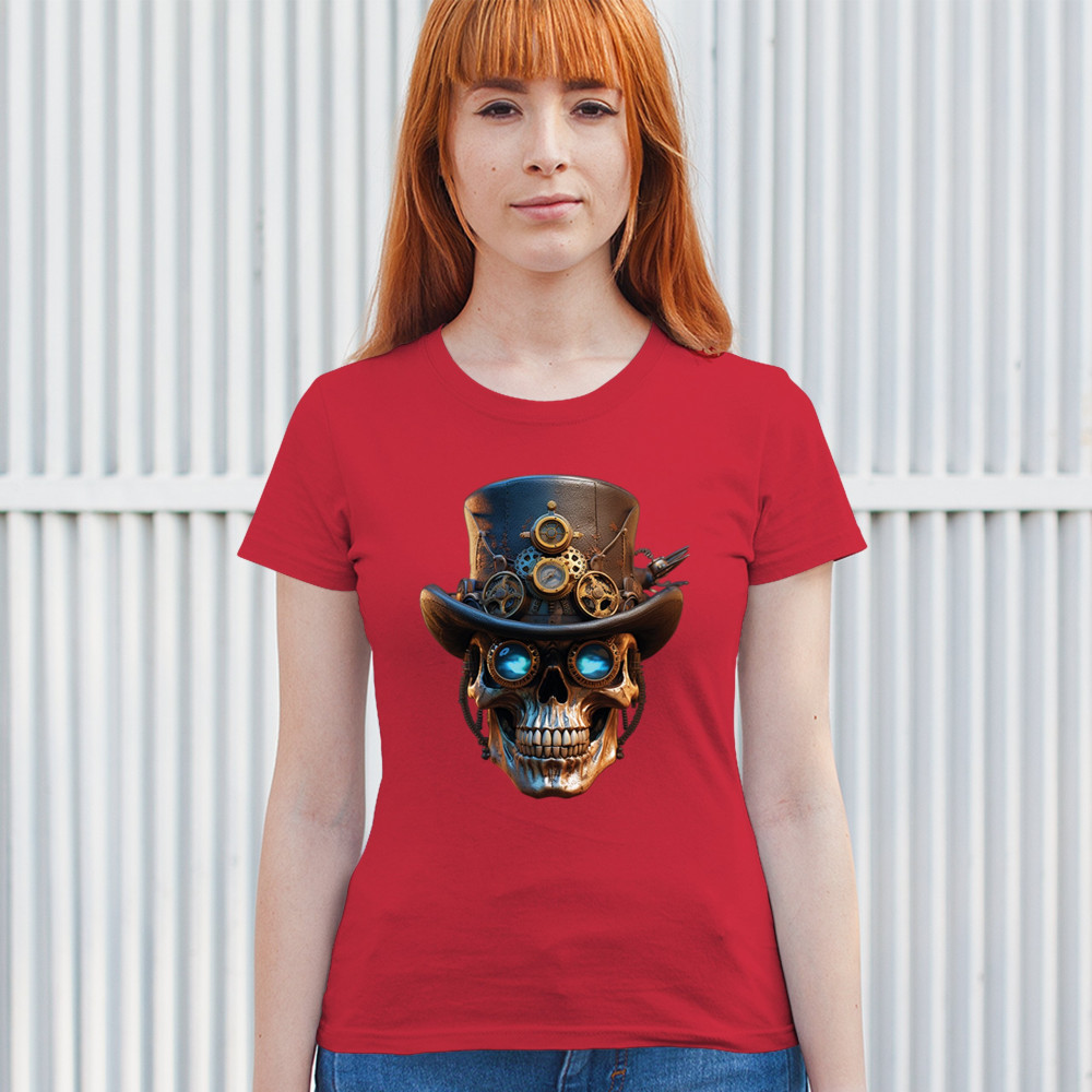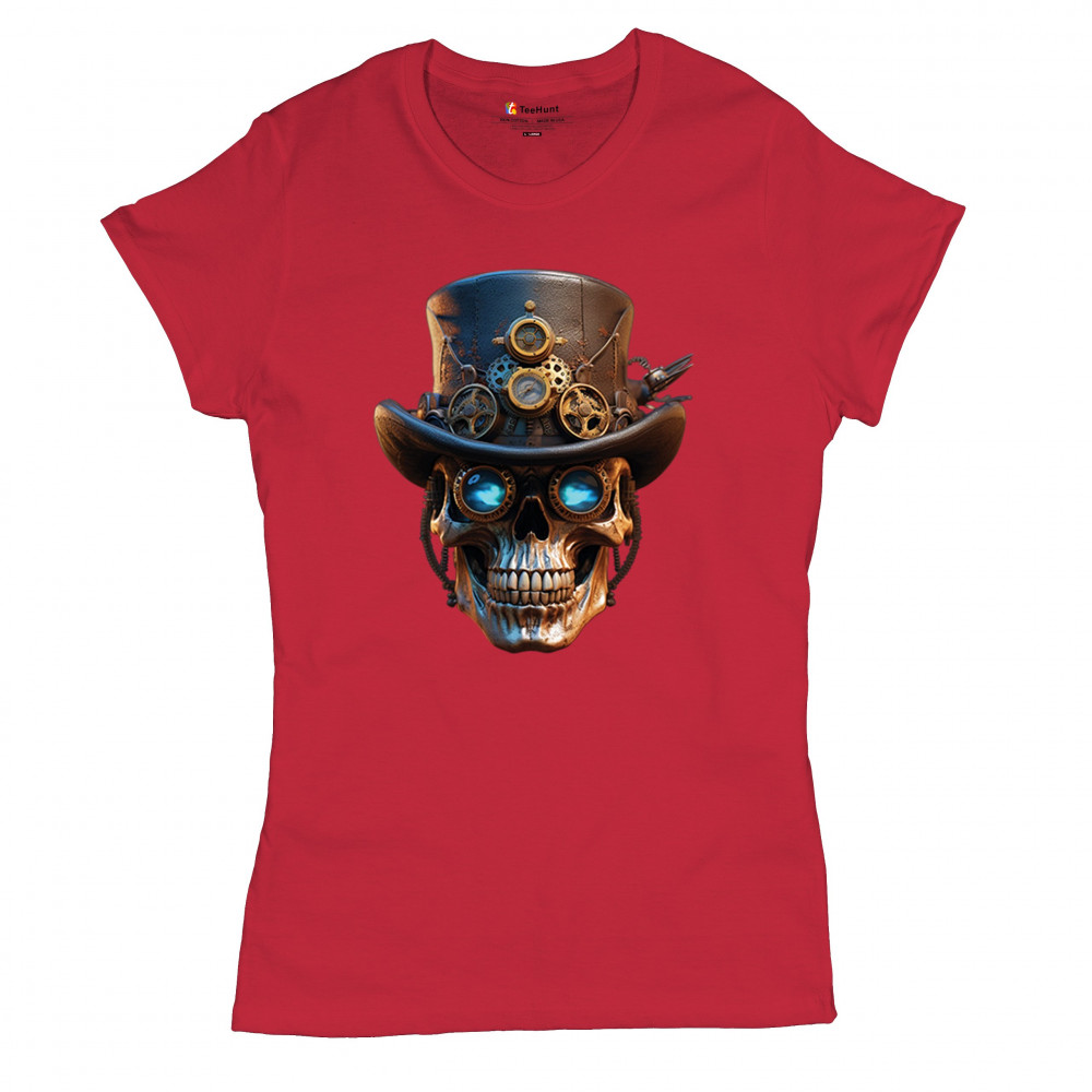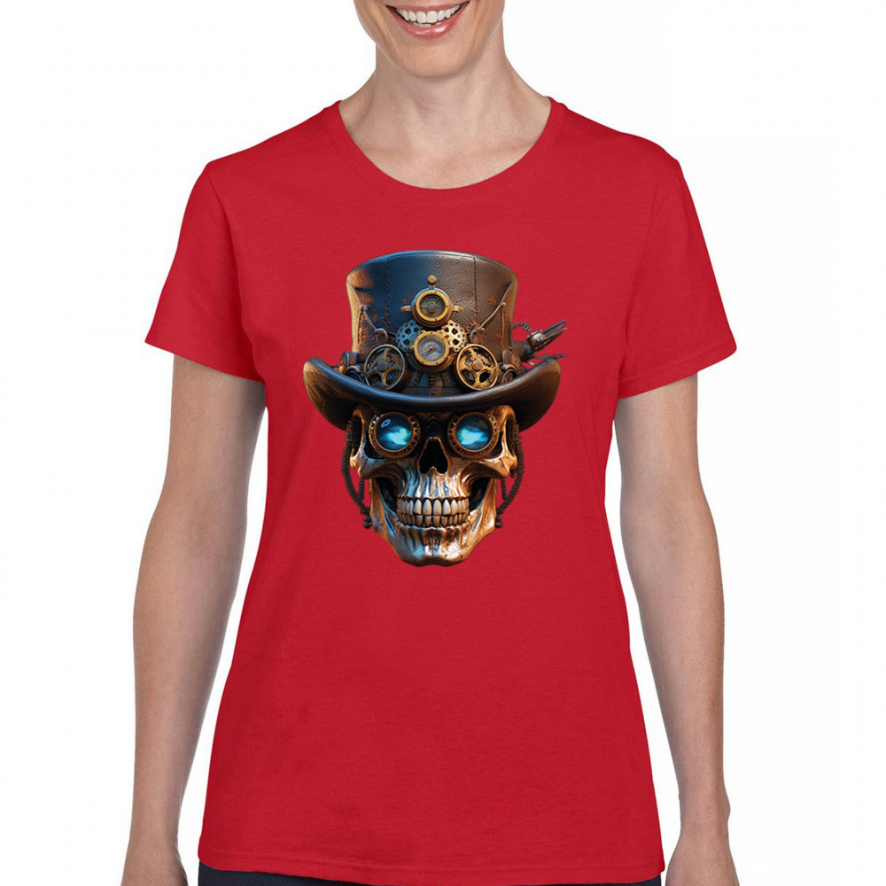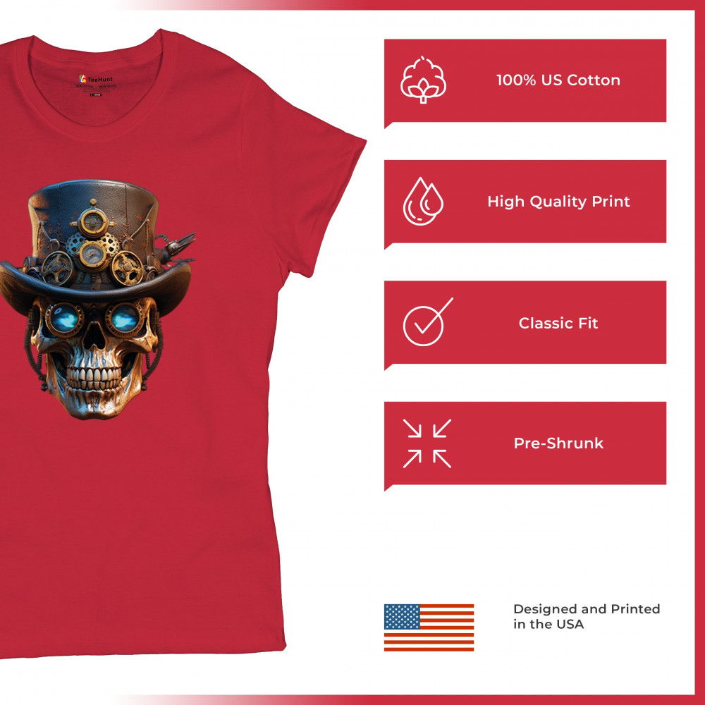 Steampunk skull shirt with gothic retro-futurism. Perfect for Halloween, cosplay, biker rallies, and edgy rebel fashion lovers.