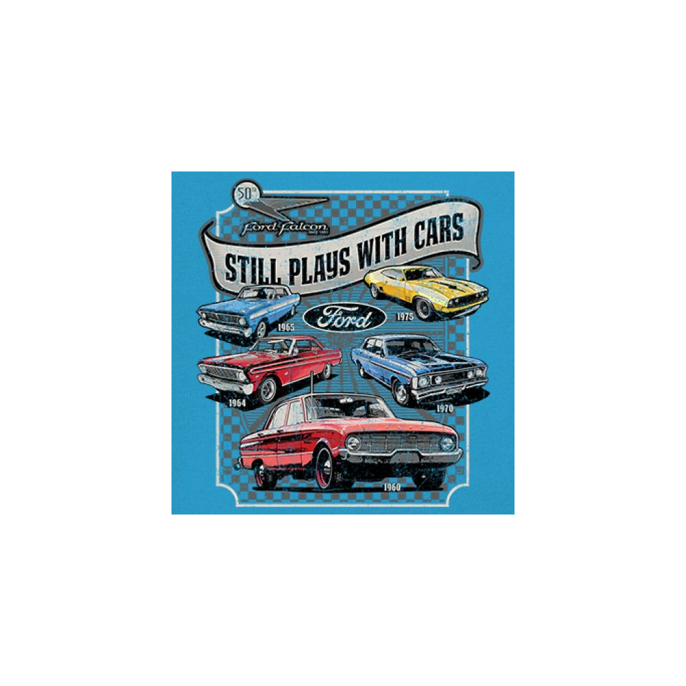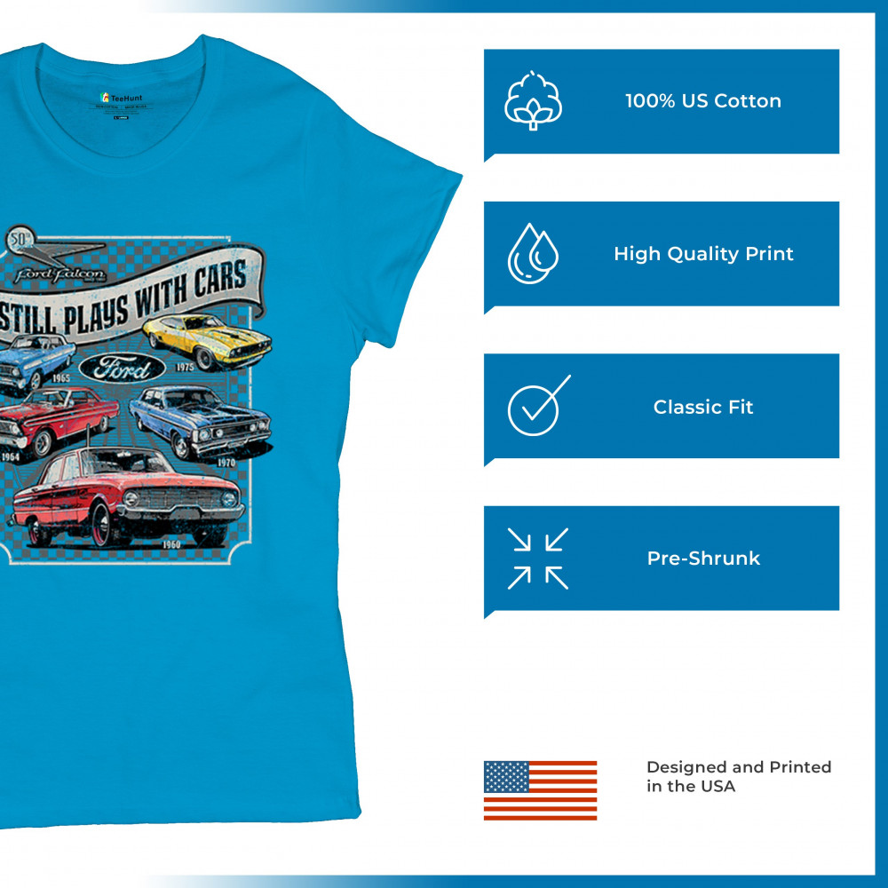 Still Plays With Cars pays tribute to the Ford Falcon, showcasing legendary models from the 60s and 70s for true vintage car lovers. Perfect for gearheads, hot rod fans, and classic car collectors, this design celebrates retro automobile culture, vintage horsepower, and old school rides. A great value piece for anyone devoted to the classic car scene.