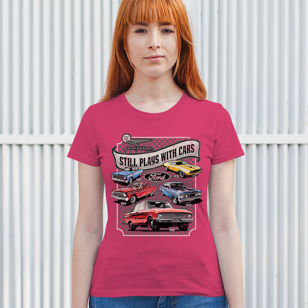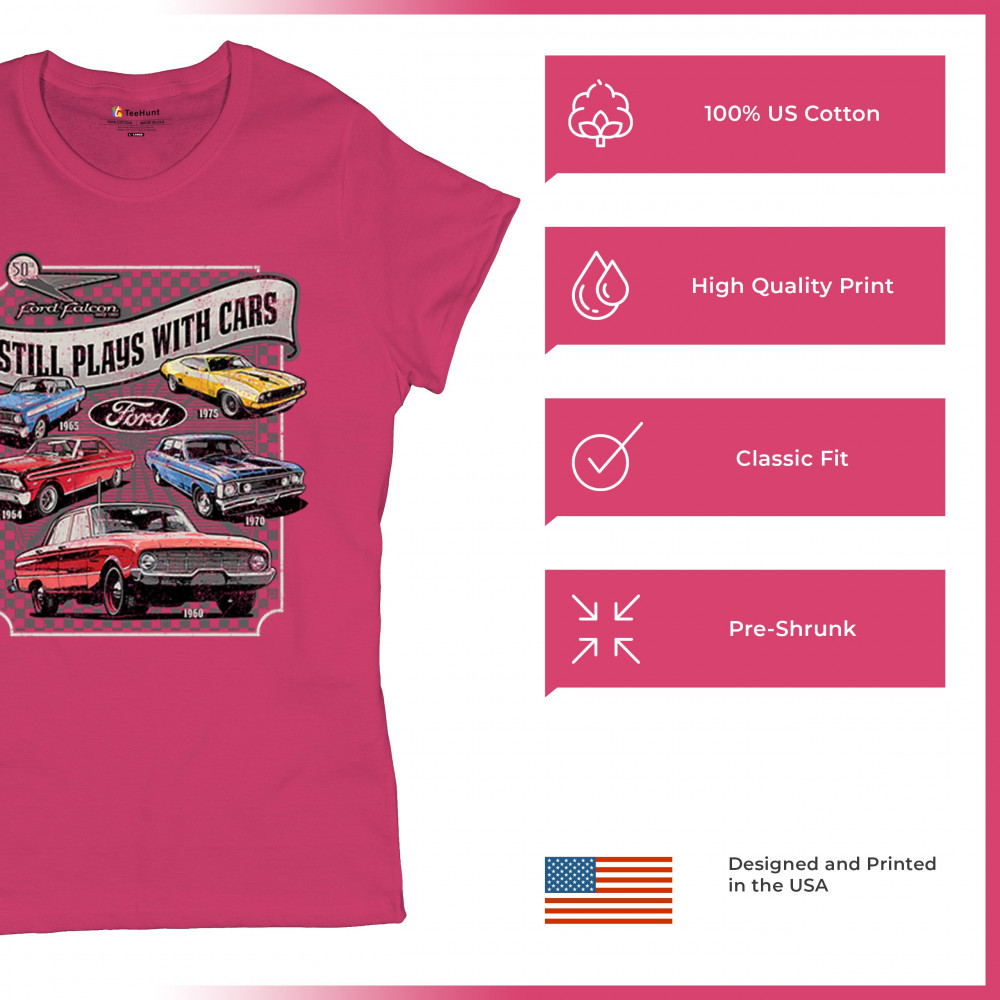 Still Plays With Cars pays tribute to the Ford Falcon, showcasing legendary models from the 60s and 70s for true vintage car lovers. Perfect for gearheads, hot rod fans, and classic car collectors, this design celebrates retro automobile culture, vintage horsepower, and old school rides. A great value piece for anyone devoted to the classic car scene.