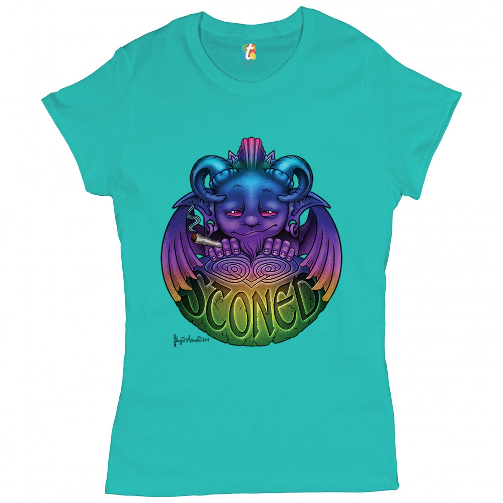STONED GARGOYLE t-shirt pot marijuana joint funny weird 420 women's tee light blue
