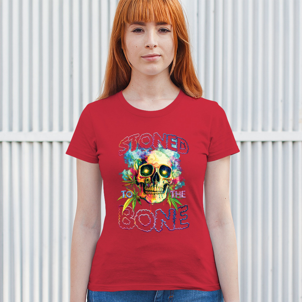 Turn heads with this bold, psychedelic “Stoned to the Bone†skull tee—loaded with neon colors, weed leaves, and a trippy aesthetic. It’s built for cannabis lovers, hippies, festival-goers, and party people living the high life. The ultimate head shop style and 420 fashion statement.