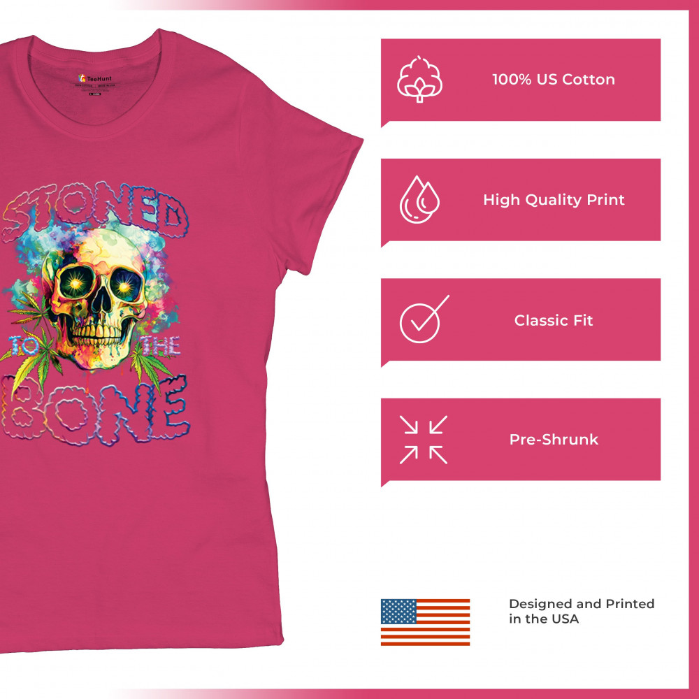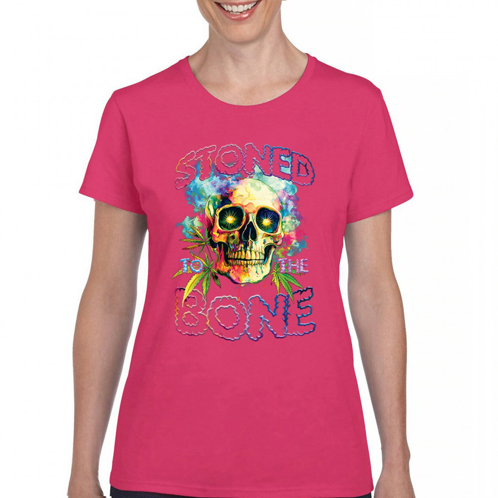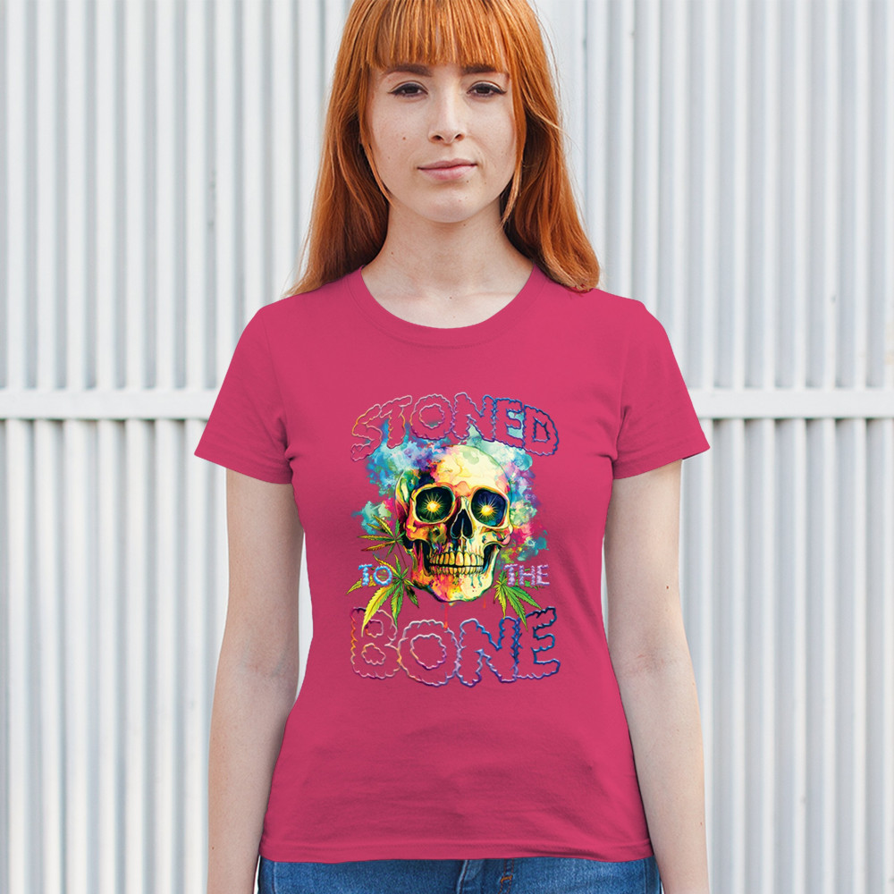 Turn heads with this bold, psychedelic “Stoned to the Bone†skull tee—loaded with neon colors, weed leaves, and a trippy aesthetic. It’s built for cannabis lovers, hippies, festival-goers, and party people living the high life. The ultimate head shop style and 420 fashion statement.