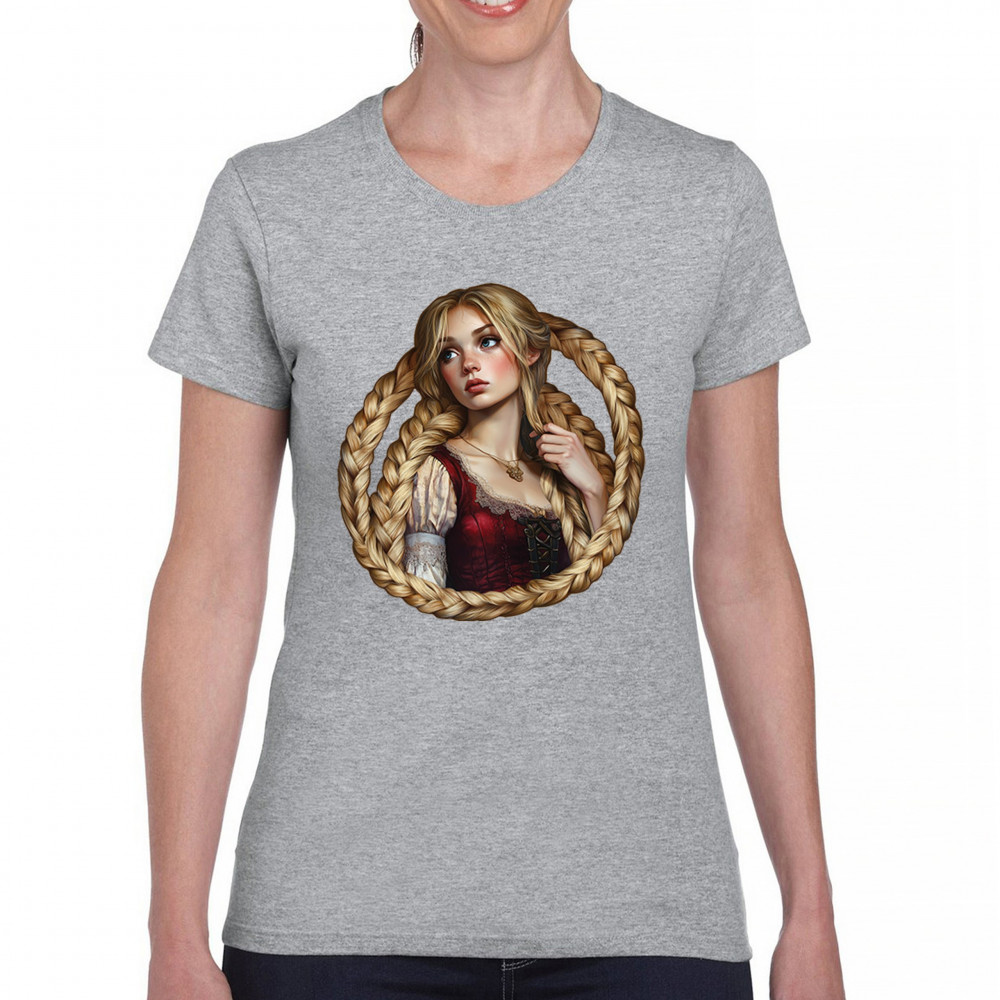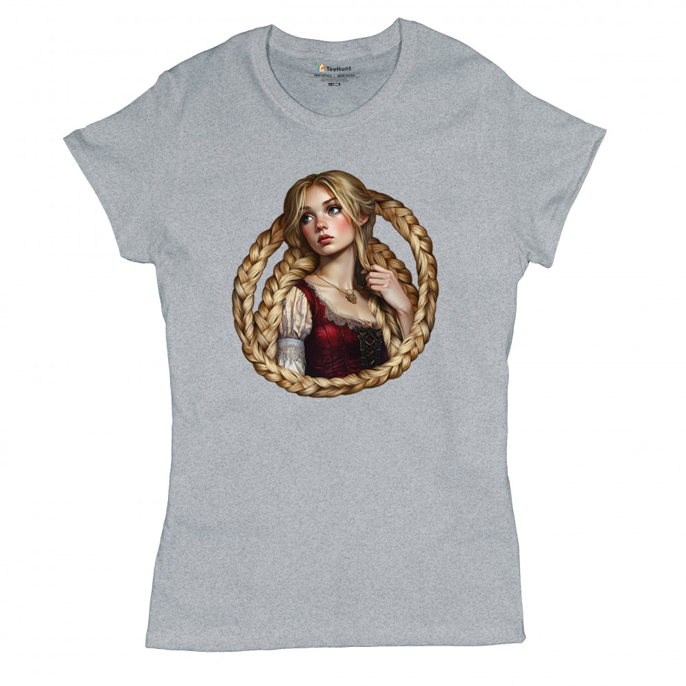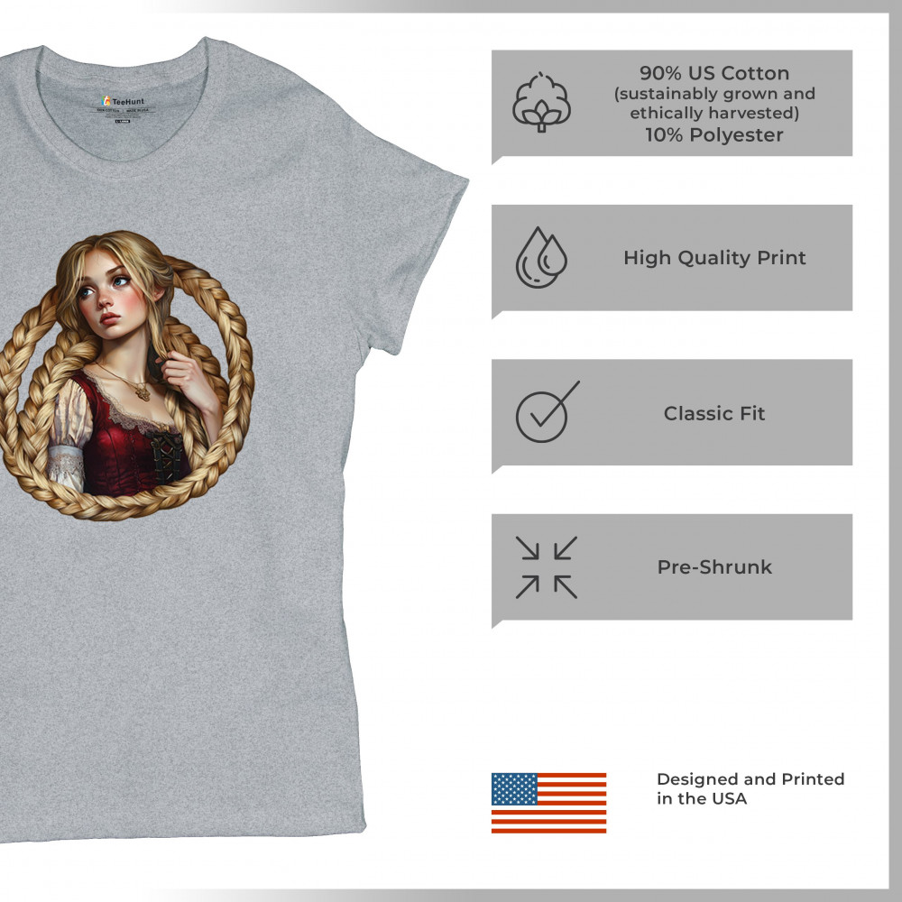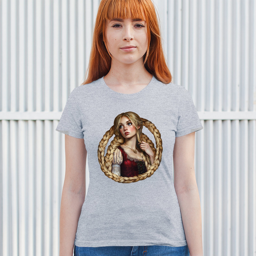 A dreamy design featuring a blonde girl with long braided hair encircling her like a frame. With vintage dress details and a wistful look, this artwork channels the essence of fairytales, romantic legends, and gentle feminine power. Ideal for fantasy lovers, folklore fans, and collectors of magical storybook themes.