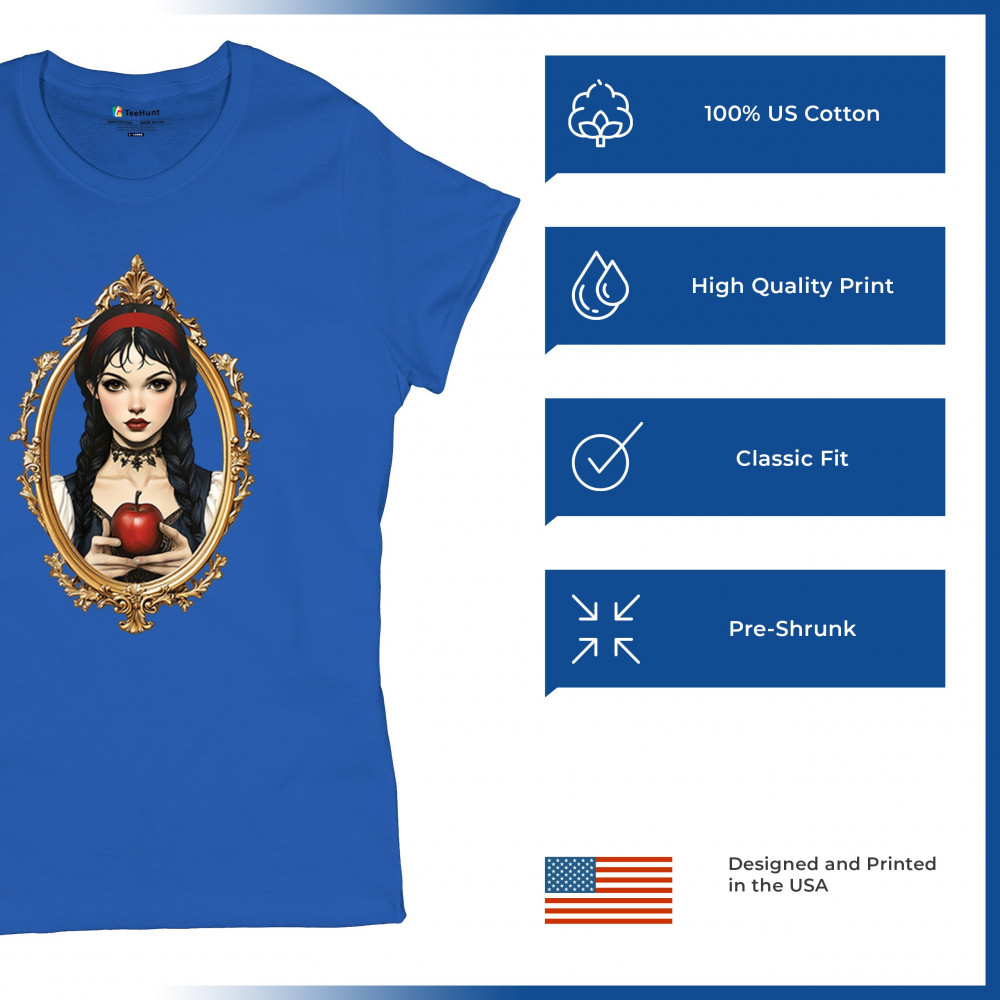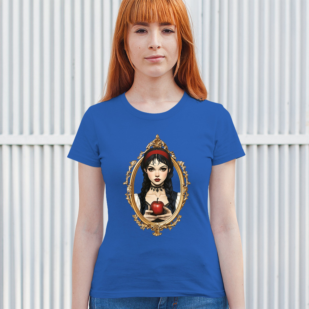 This enchanting design brings to life a gothic-inspired girl holding a red apple, encased in a regal vintage mirror frame. With elements pulled from Snow White, fairytales, and fantasy symbolism, it blends innocence and temptation with dark romanticism. Perfect for dreamers, collectors, and lovers of magical narratives and visual elegance.