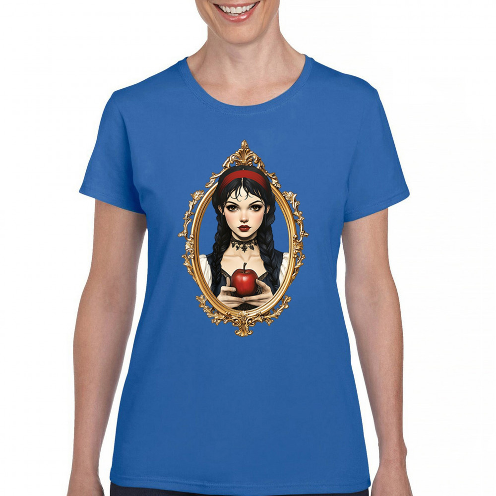 Dark fairytale design with red apple, gold frame, and Snow White vibes. A dreamy blend of fantasy, gothic style, and magical storytelling.