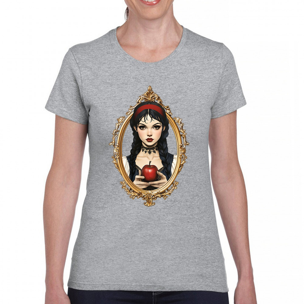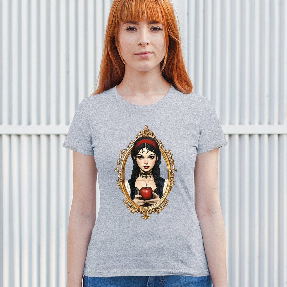 This enchanting design brings to life a gothic-inspired girl holding a red apple, encased in a regal vintage mirror frame. With elements pulled from Snow White, fairytales, and fantasy symbolism, it blends innocence and temptation with dark romanticism. Perfect for dreamers, collectors, and lovers of magical narratives and visual elegance.