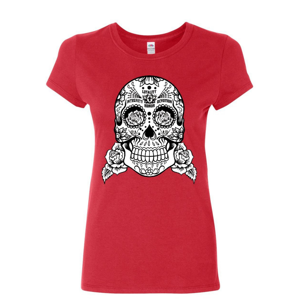 SUGAR SKULL cotton t-shirt loyalty integrity devotion honor red