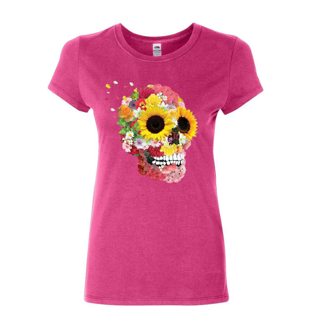 SUNFLOWERS SUGAR SKULL women's t-shirt day of the dead calavera mexico shirt pink