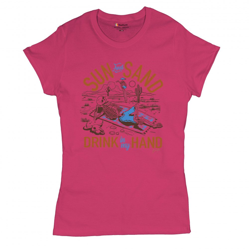 Relive your beach memories with our 'Sun, Sand, and Drink in Hand' design, evoking the carefree spirit of summer days.
