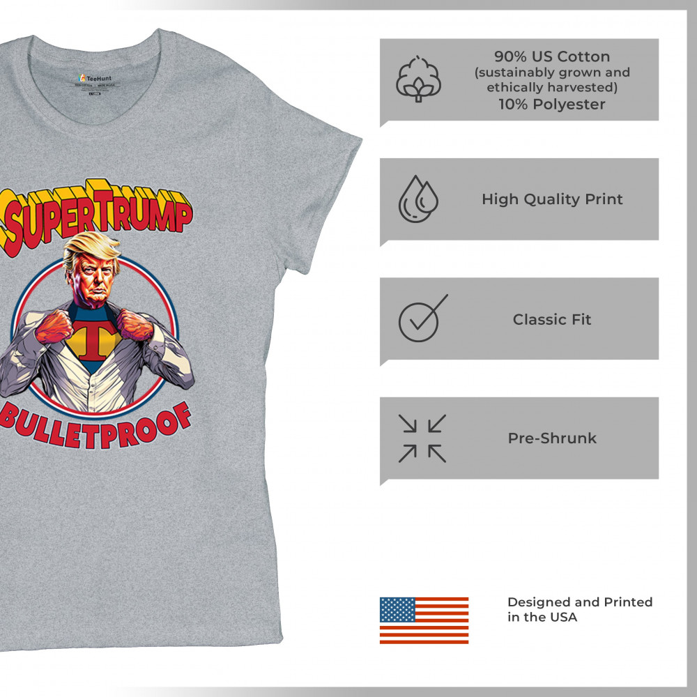 Express your support with a bold SuperTrump design! Perfect for patriots and rallies, this tee symbolizes victory, strength, and conservative pride.