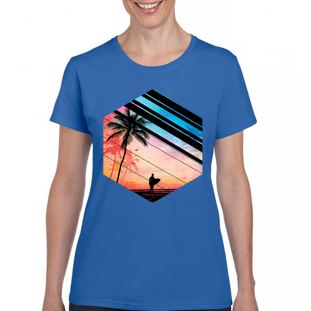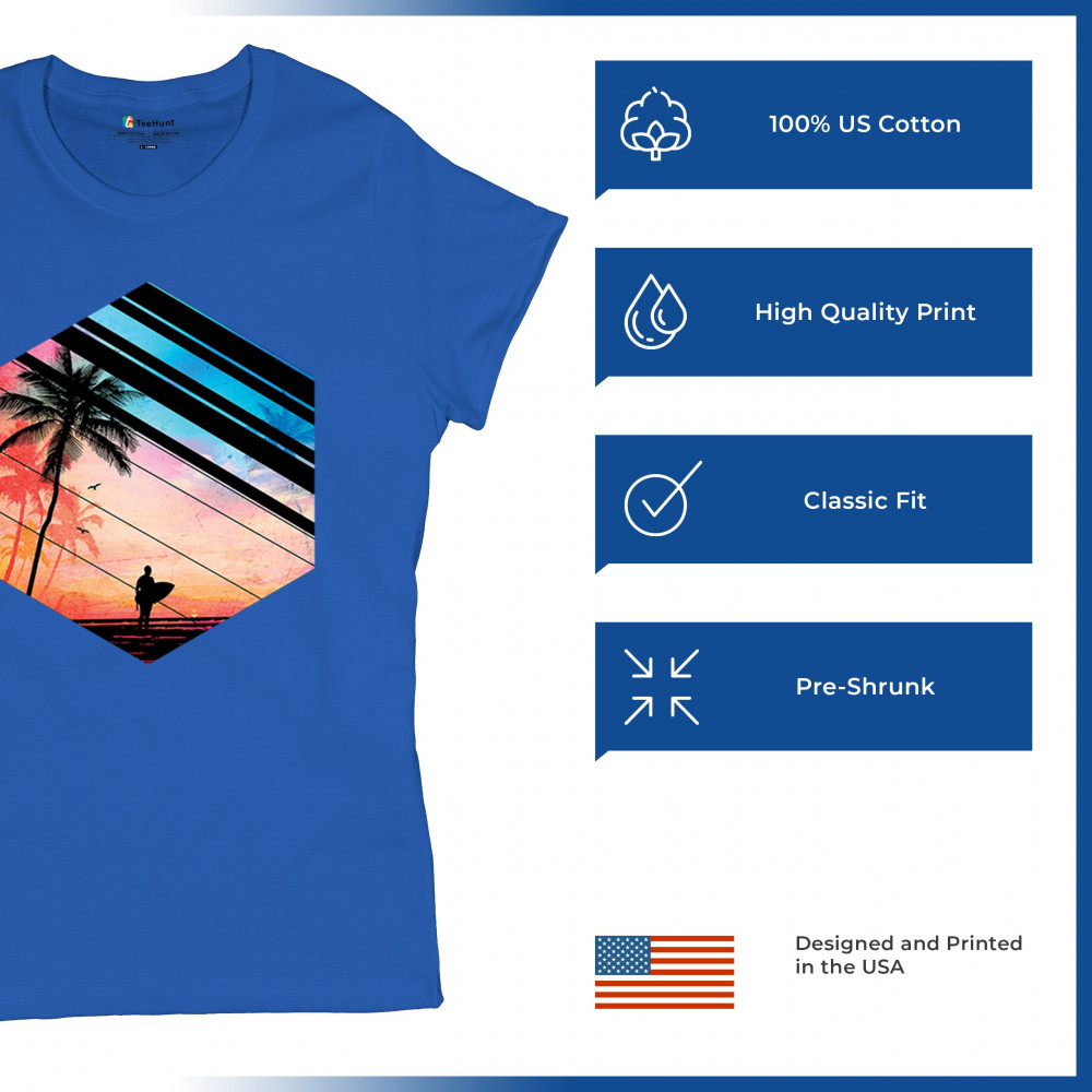Catch the vibe of endless summer with our surf-inspired tee. Featuring silhouetted palms, warm gradients, and cool geometric shapes, it’s a visual journey from the urban grind to tropical tranquility. This tee is for the soul surfers and dreamers, made to be as enduring as the memories of your last wave. It's more than apparel—it’s a horizon of possibilities. Add this staple to your collection and let the good times roll.