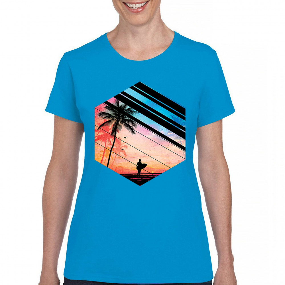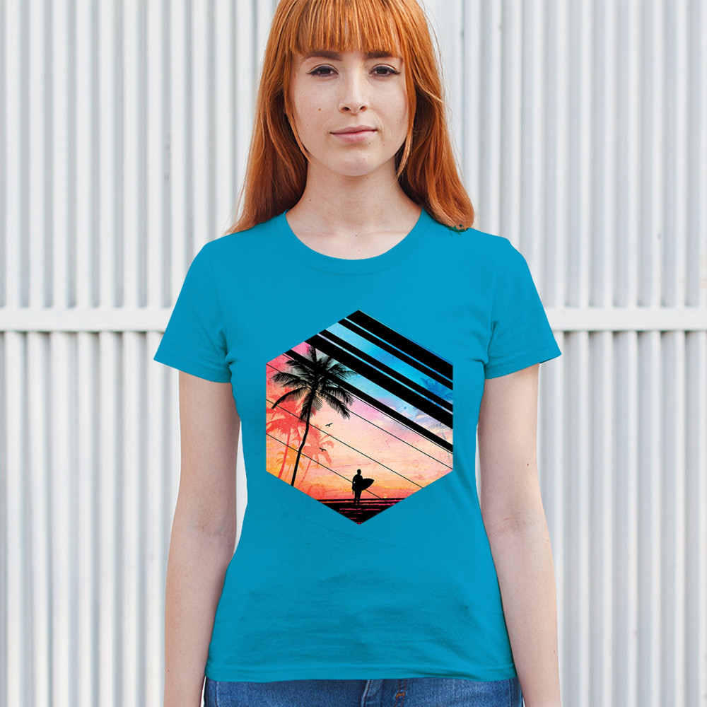Catch the vibe of endless summer with our surf-inspired tee. Featuring silhouetted palms, warm gradients, and cool geometric shapes, it’s a visual journey from the urban grind to tropical tranquility. This tee is for the soul surfers and dreamers, made to be as enduring as the memories of your last wave. It's more than apparel—it’s a horizon of possibilities. Add this staple to your collection and let the good times roll.