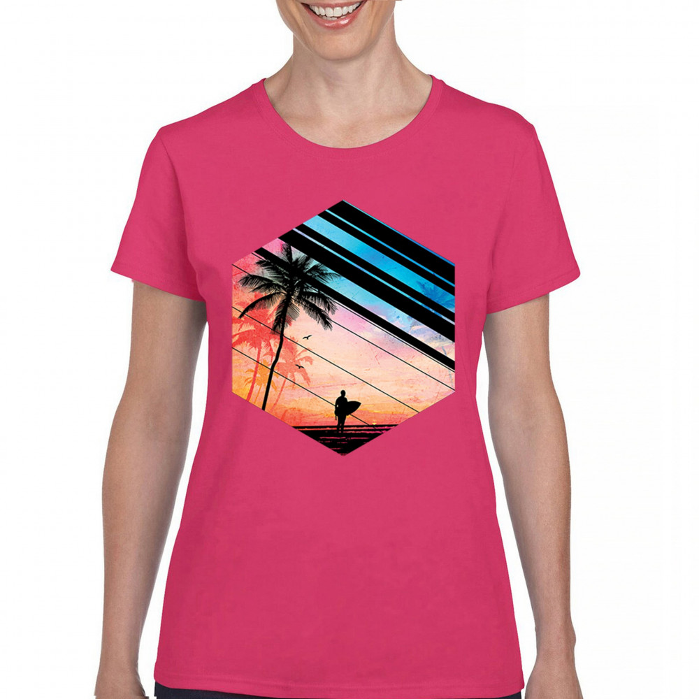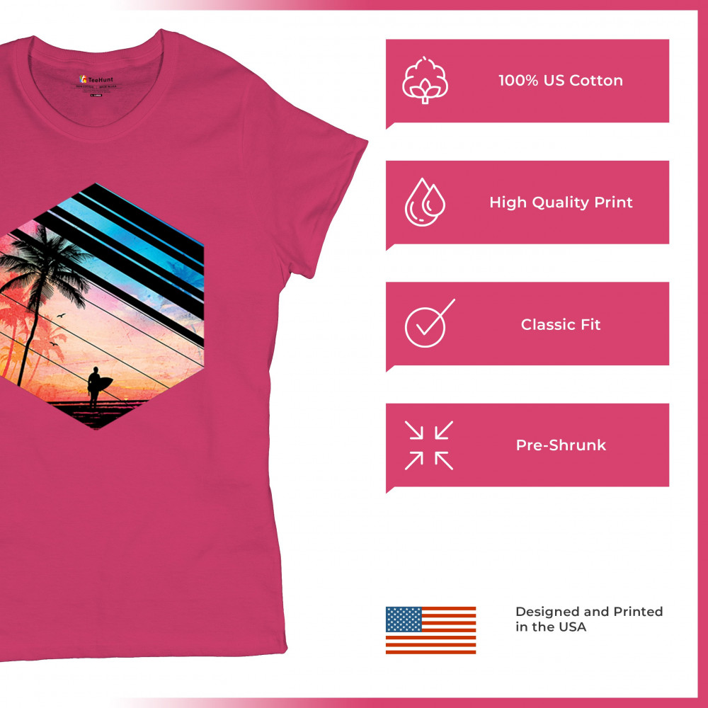 Catch the vibe of endless summer with our surf-inspired tee. Featuring silhouetted palms, warm gradients, and cool geometric shapes, it’s a visual journey from the urban grind to tropical tranquility. This tee is for the soul surfers and dreamers, made to be as enduring as the memories of your last wave. It's more than apparel—it’s a horizon of possibilities. Add this staple to your collection and let the good times roll.