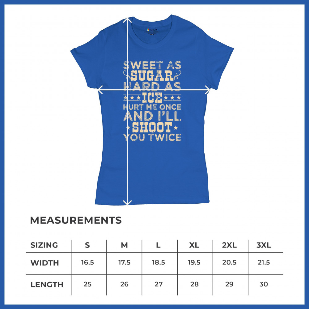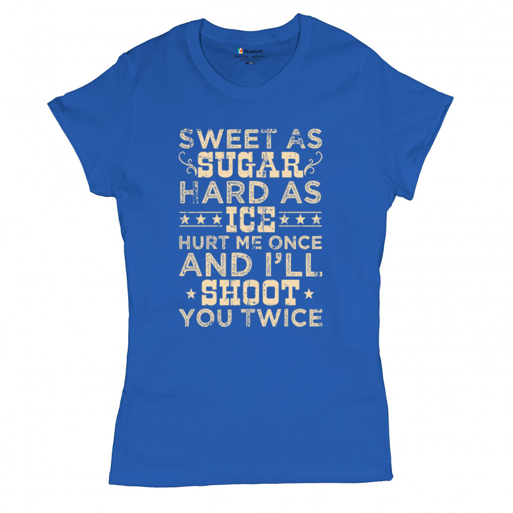 Declare your stance with this bold pro-gun design featuring the quote "Sweet as Sugar, Hard as Ice, Hurt Me Once, I’ll Shoot You Twice." Made for patriots, firearm enthusiasts, military supporters, and defenders of the Constitution. The design blends American pride, 2nd Amendment power, and personal grit in one fierce statement of freedom and justice.