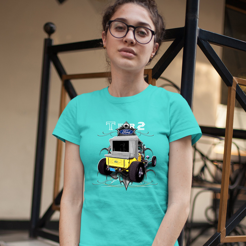 T FOR 2 t-shirt ford model t hot rod american muscle licensed women's tee light blue
