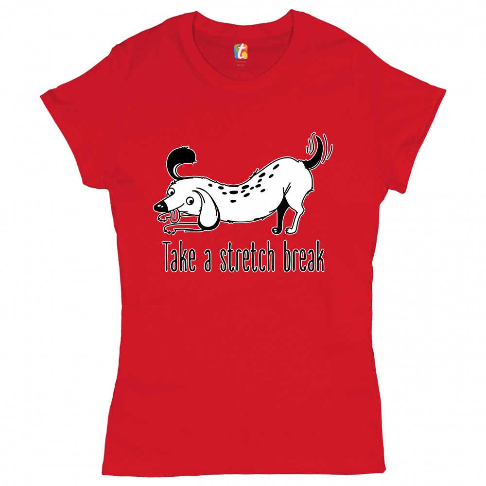 TAKE A STRETCH BREAK t-shirt funny dachshund dog lover pet owner women's tee red