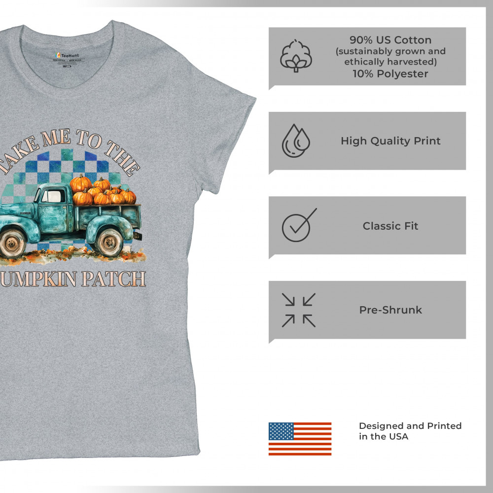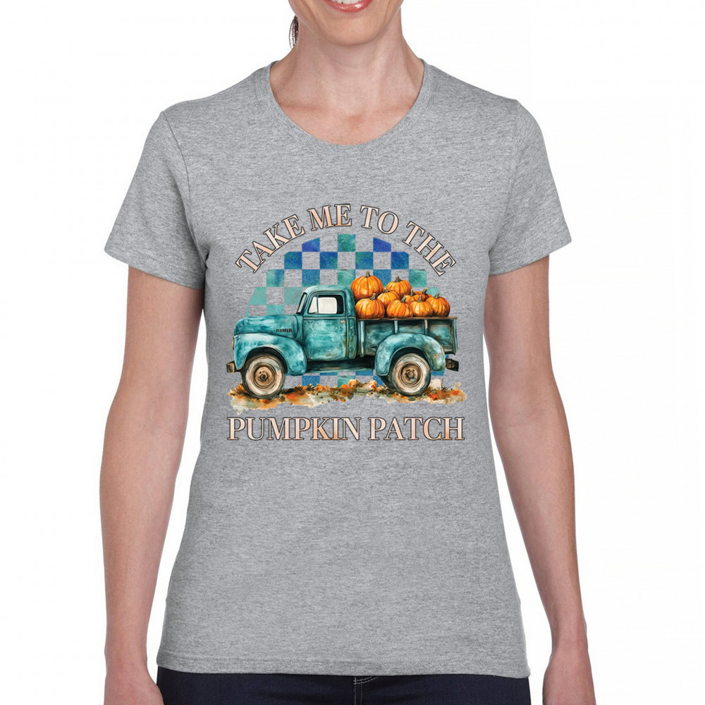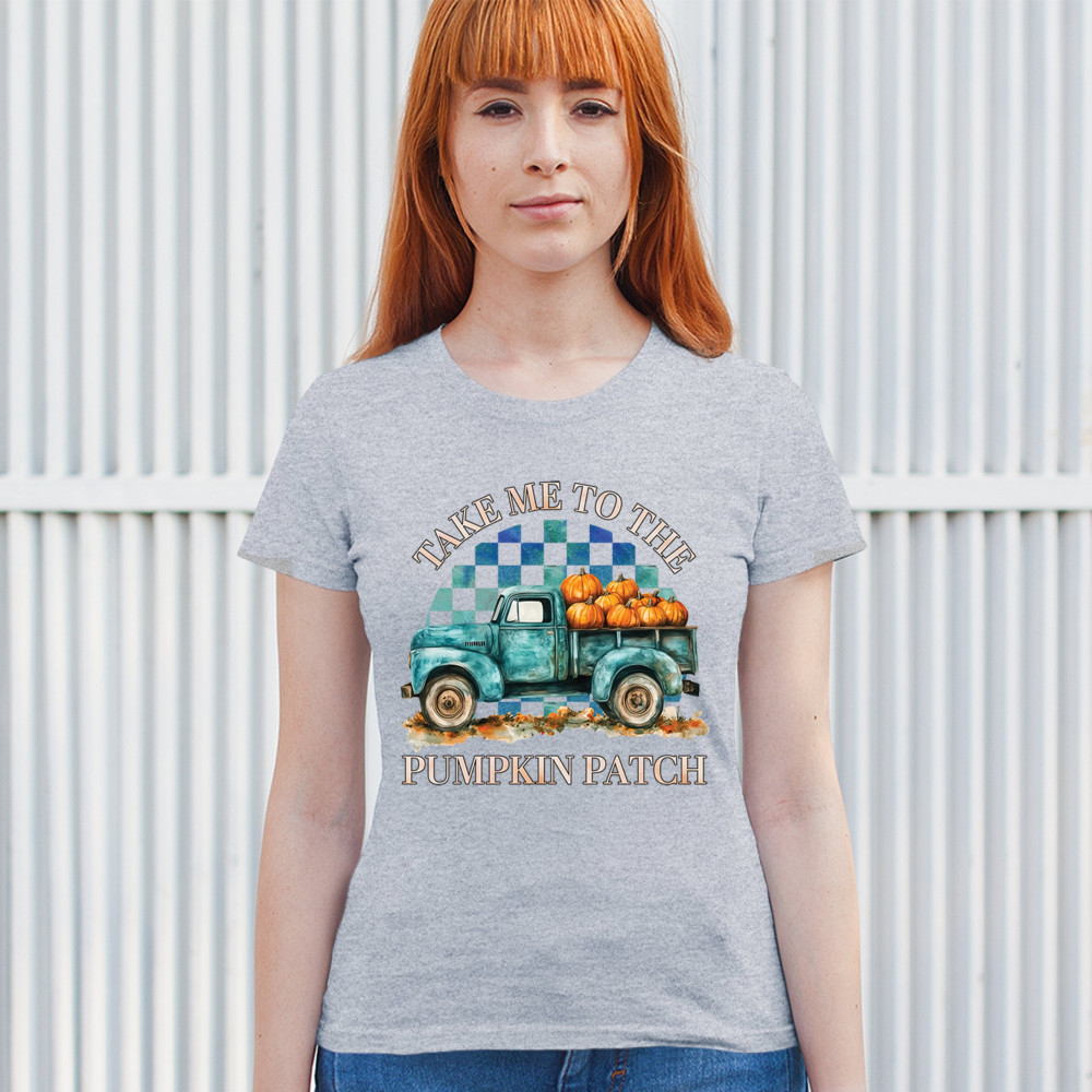 Celebrate autumn in style with the "Take Me to the Pumpkin Patch" design, featuring a vintage truck and festive pumpkins—perfect for fall lovers!