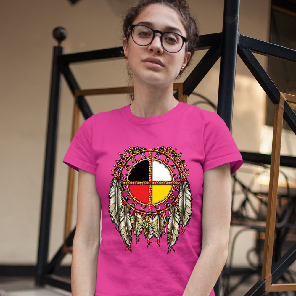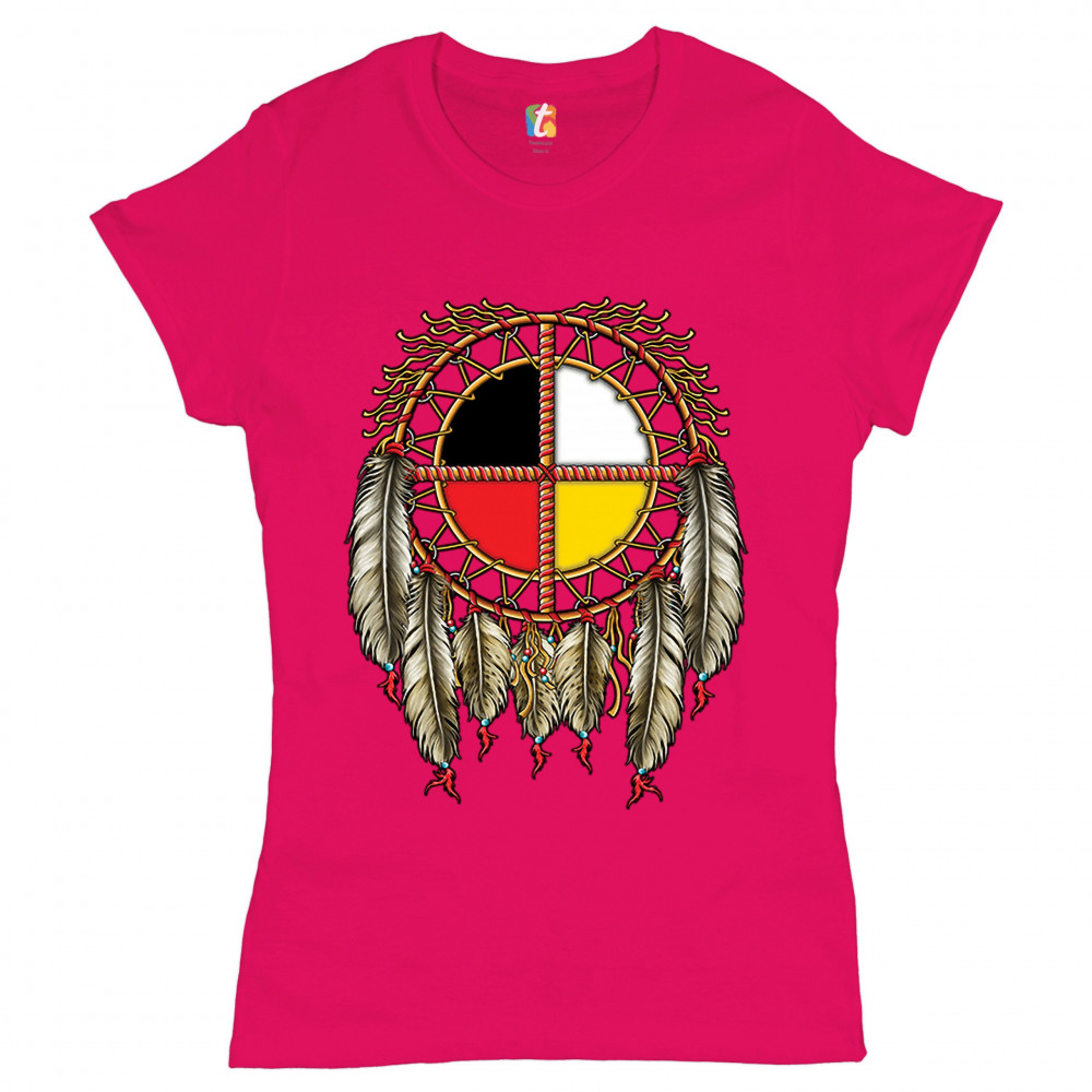THE MEDICINE WHEEL DREAMCATCHER t-shirt native american symbol women's tee pink