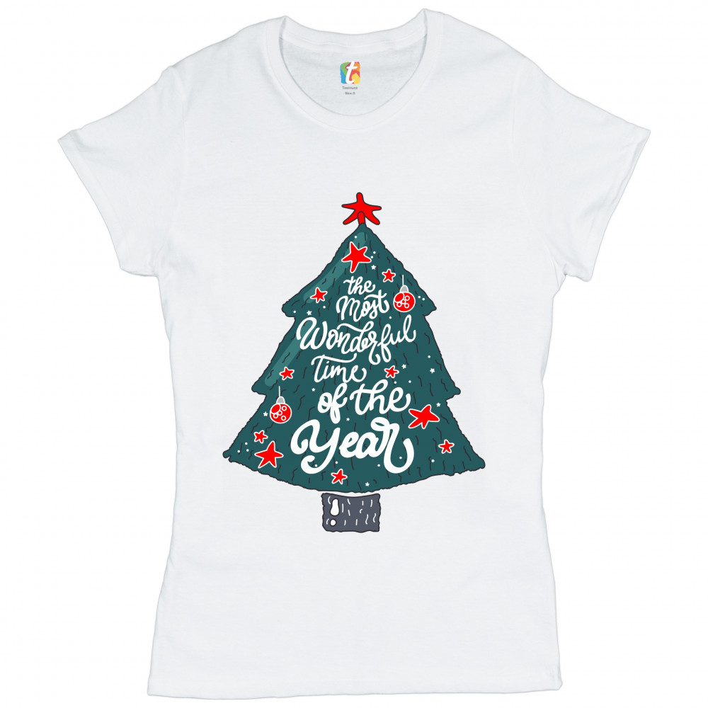 THE MOST WONDERFUL TIME OF THE YEAR t-shirt christmas tree xmas women's tee white