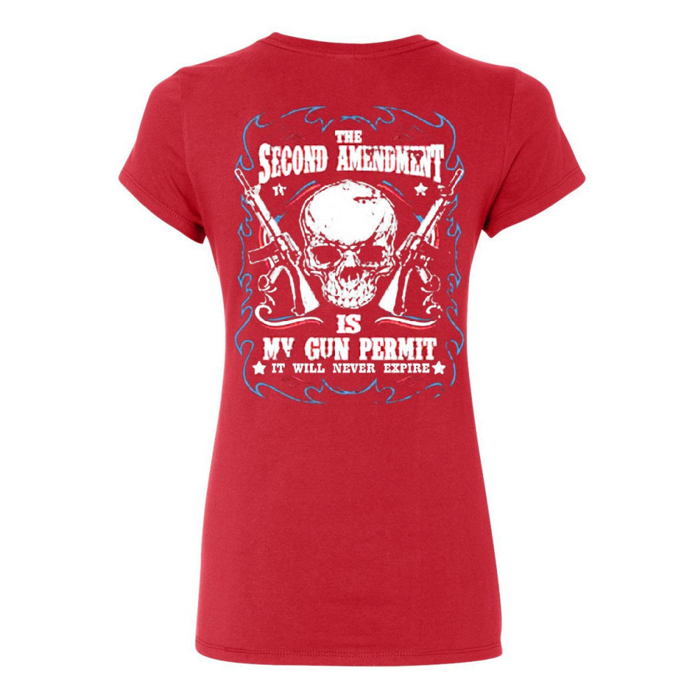 2ND AMENDMENT IS MY GUN PERMIT cotton t-shirt gun rights red