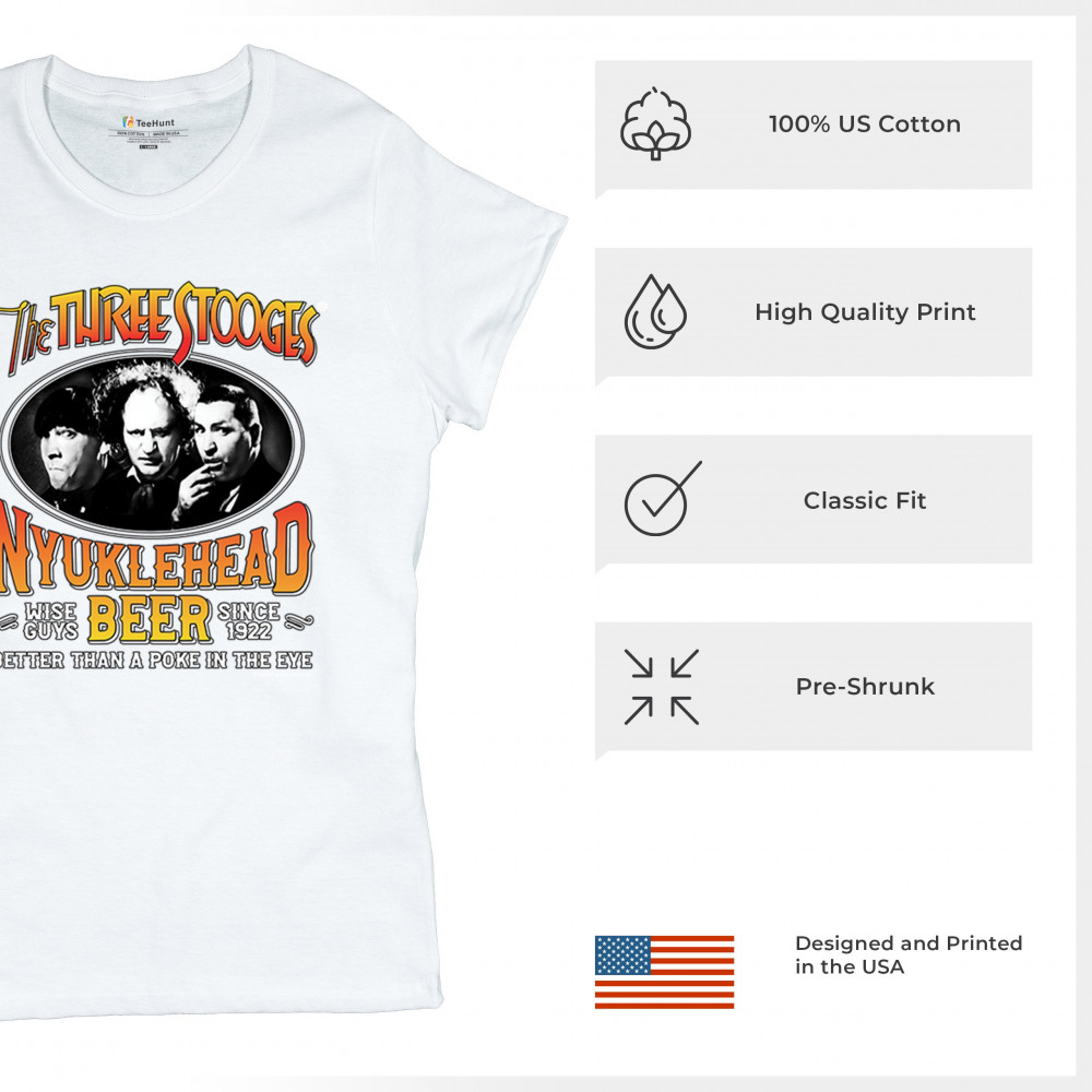 Channel the humor of The Three Stooges with our Nyuklehead Beer T-shirt, perfect for fans of the classic comedic legends.