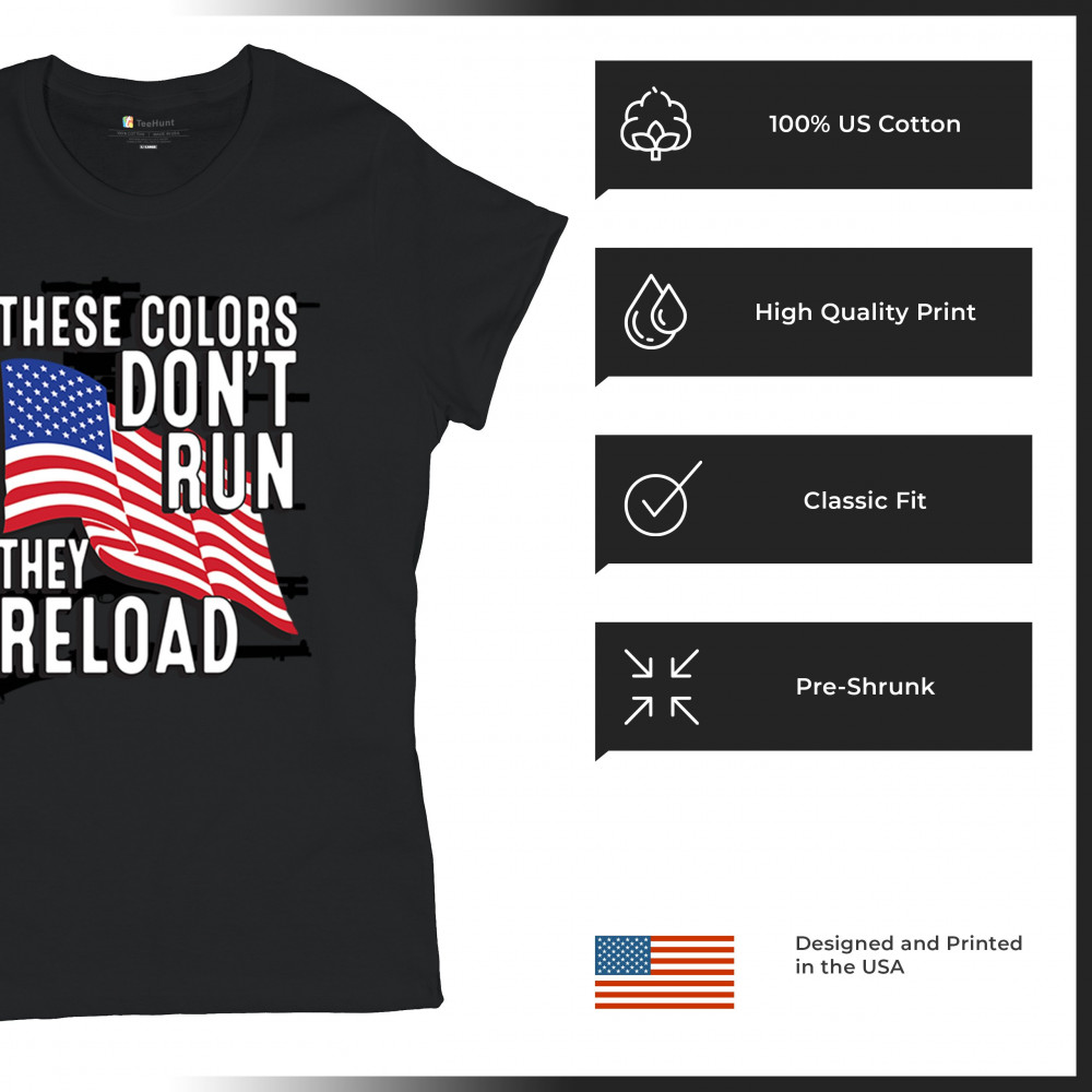 Discover the tee that boldly proclaims American resilience and liberty: 'These Colors Don't Run, They Reload'—a must-have for patriots and veterans.