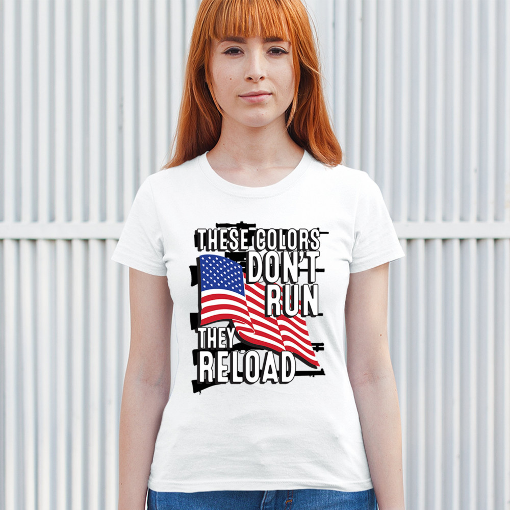 Discover the tee that boldly proclaims American resilience and liberty: 'These Colors Don't Run, They Reload'—a must-have for patriots and veterans.