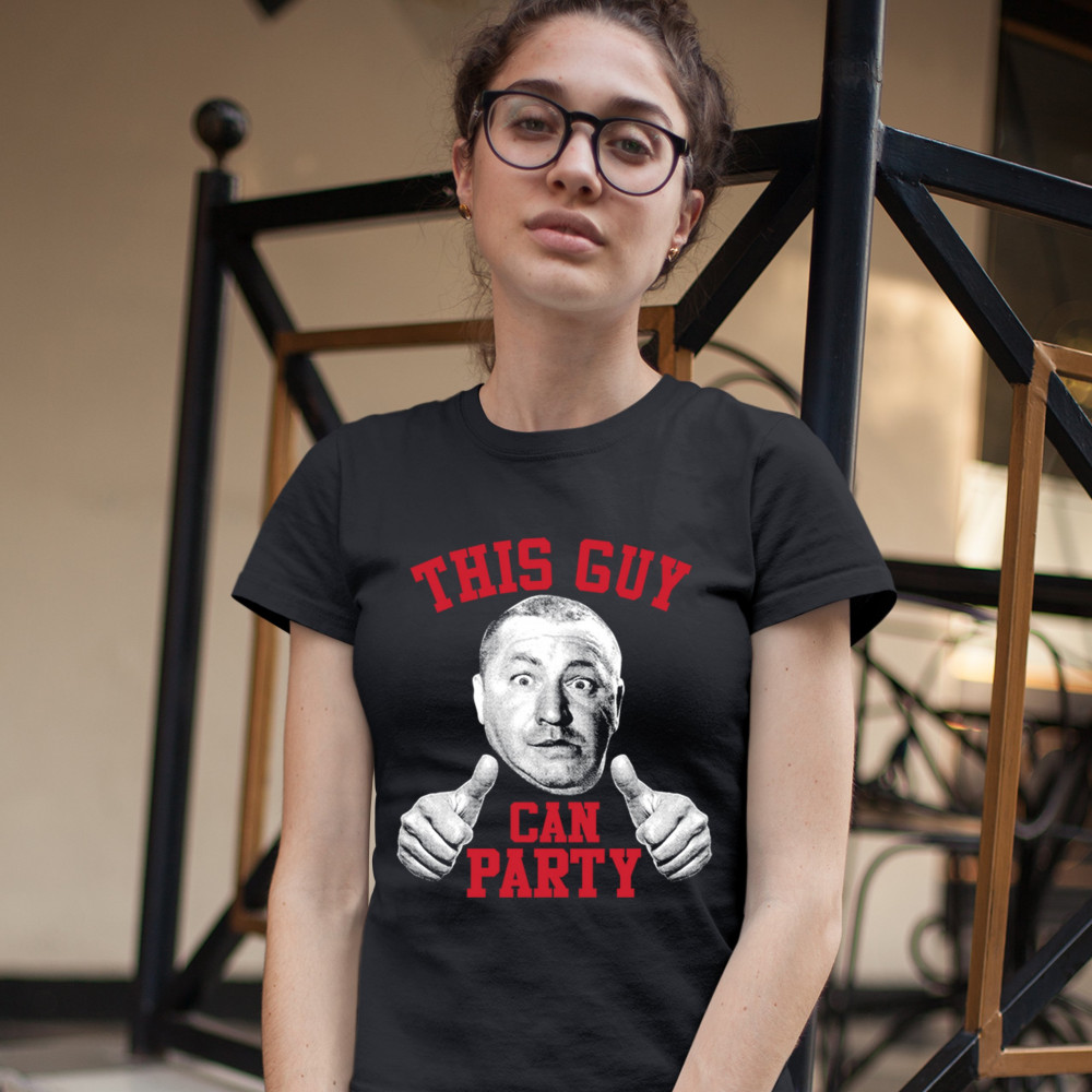 THIS GUY CAN PARTY t-shirt curly howard the three stooges women's tee black