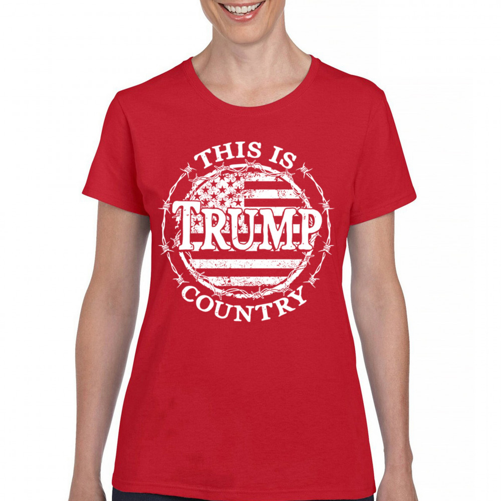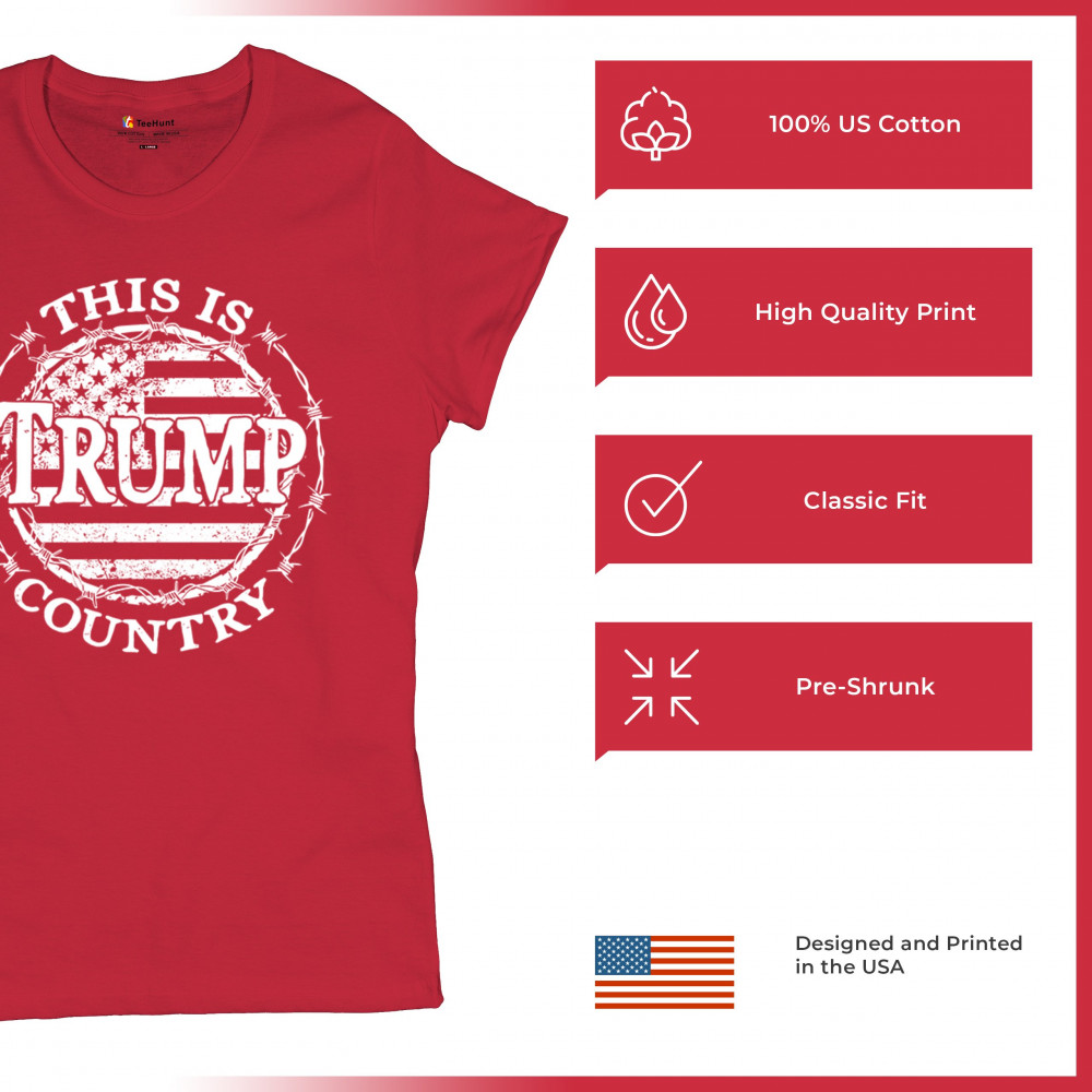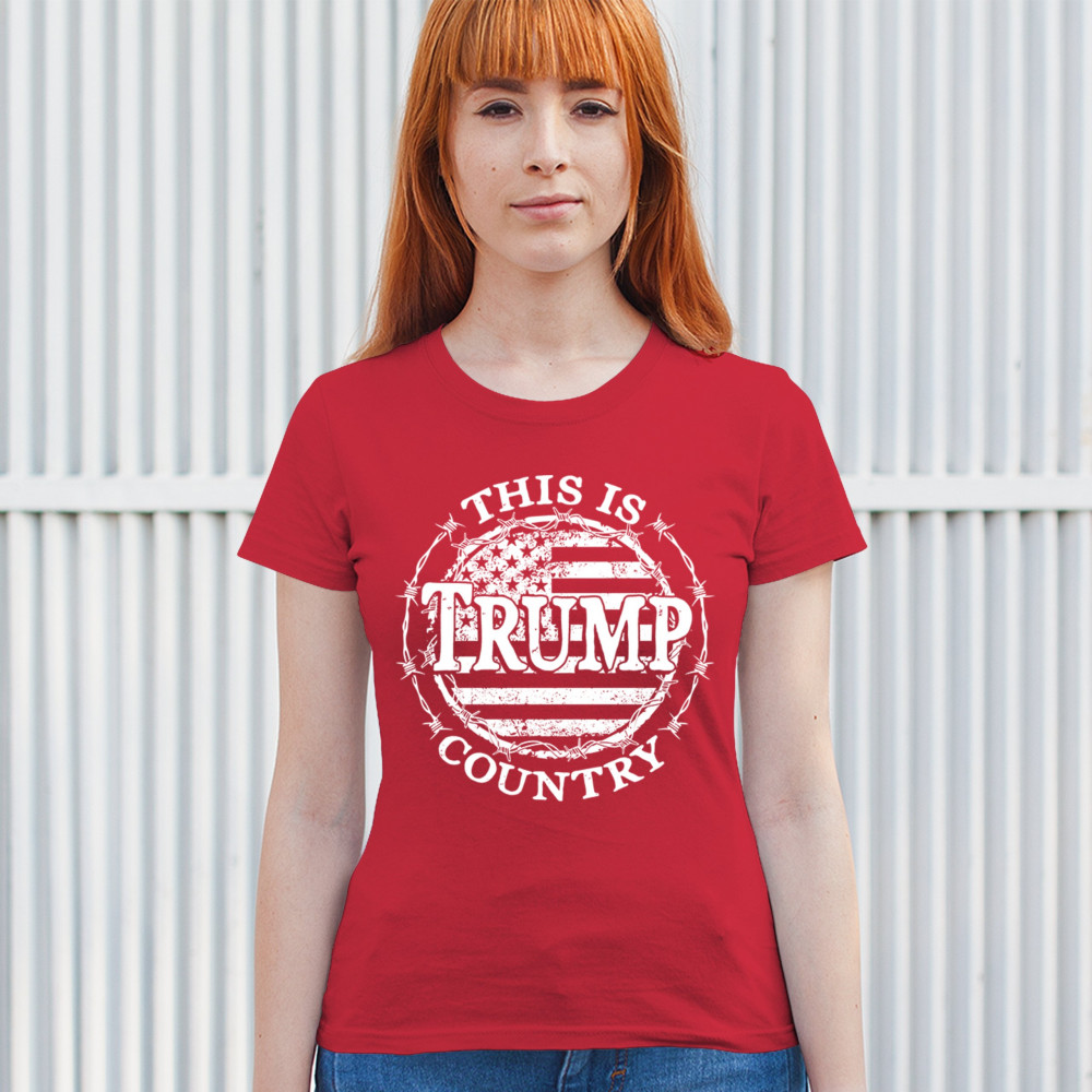 Show your support for Trump and JD Vance with the "Trump Country" design, featuring a distressed American flag and barbed wire. Perfect for rallies and patriotic events.
