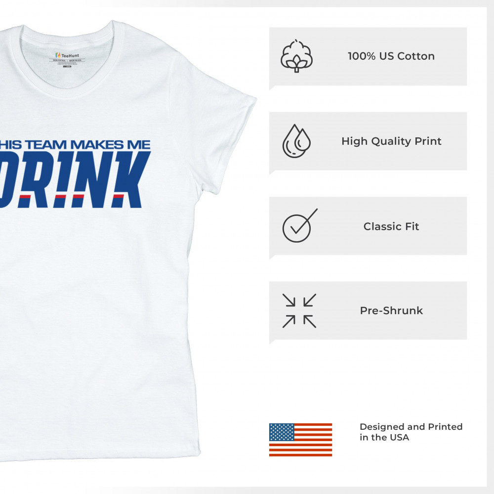 Show off your Buffalo pride with this hilarious “This Team Makes Me Drink†design. Perfect for tailgate parties, playoff season, or game night laughs, it celebrates blue, red, and white team spirit while capturing the loyal but frustrated fan experience. With gameday drinking humor, sports lover energy, and championship vibes, it’s a must-have for every Buffalo fan who loves football and laughter.