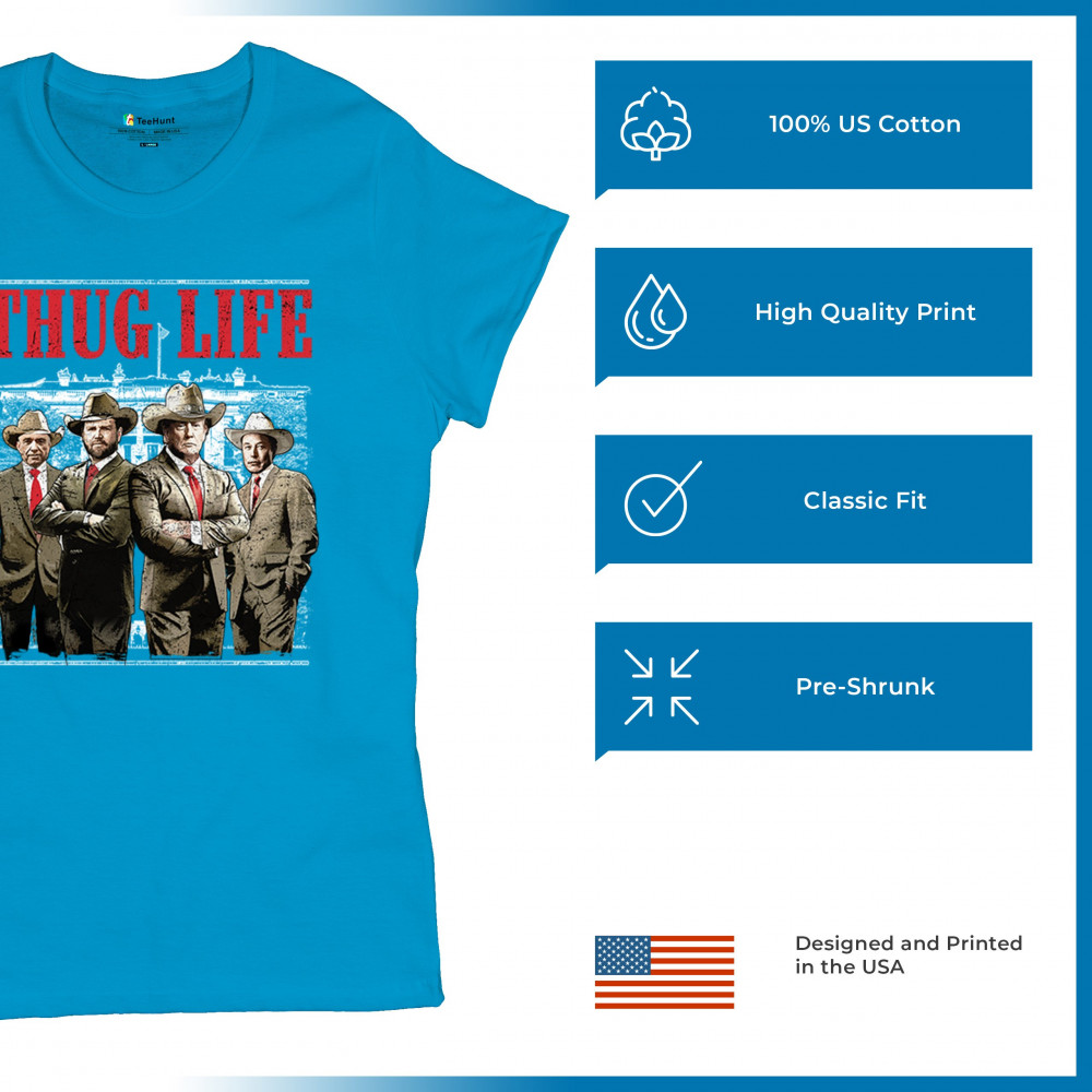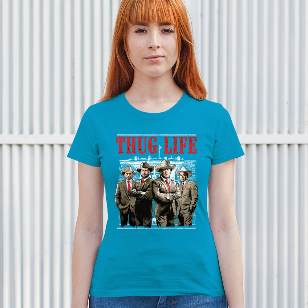 Make a statement with the Thug Life T-shirt, a must-have for every Republican and Trump supporter who stands for America First. Designed for those who believe in We The People Have Spoken, this shirt is perfect for rallies, events, or everyday wear. Featuring bold imagery and high-quality materials, it's a tribute to conservative values, the Red Wave, and the party of common sense. Get yours today and show your patriotic spirit.