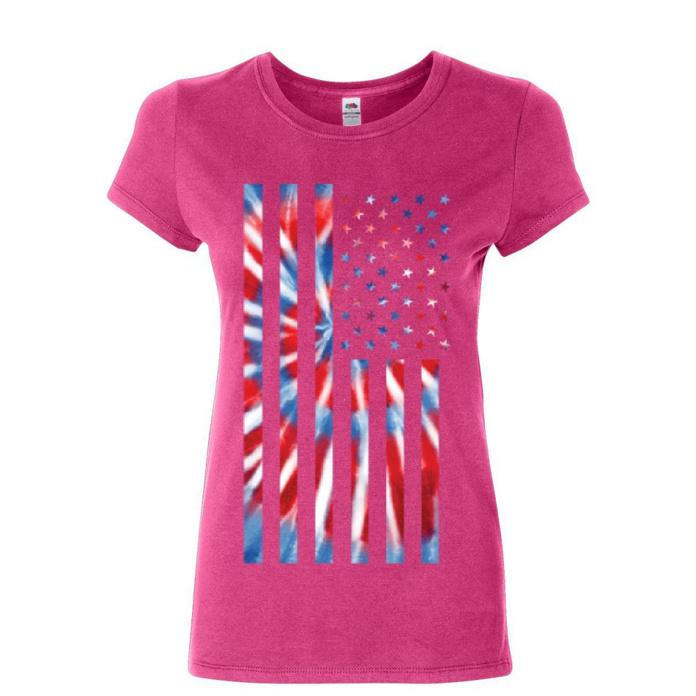 TIE-DYE AMERICAN FLAG women's t-shirt 4th of july stars and stripes shirt pink