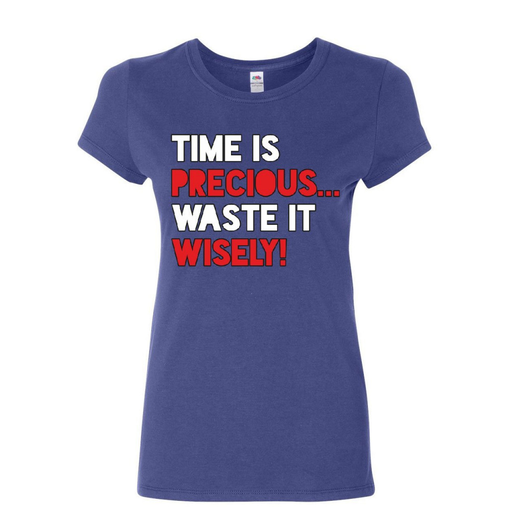 TIME IS PRECIOUS WASTE IT WISELY! time is precious waste it wisely women's t-shirt college humor lazy fun shirt blue