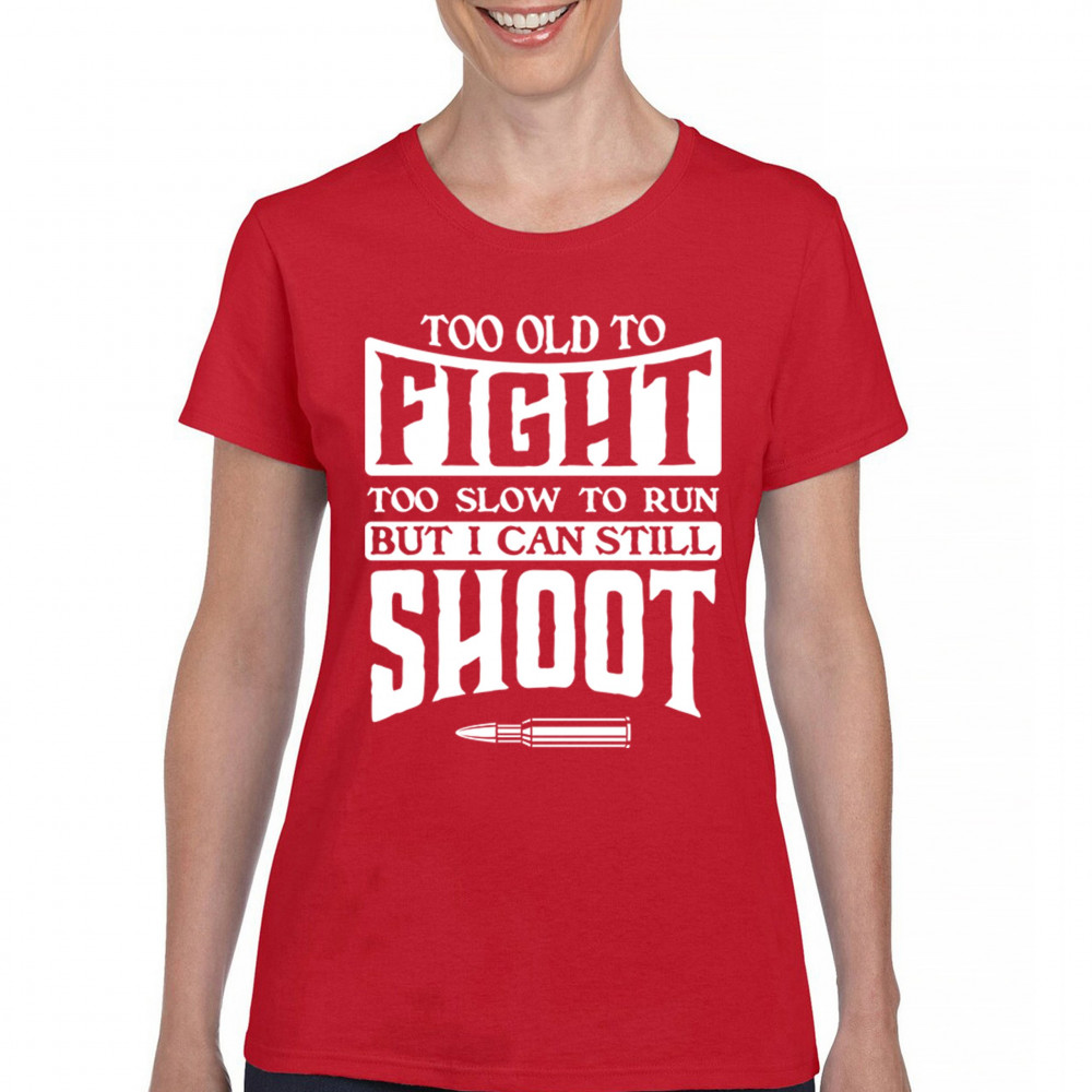 TOO SLOW TO RUN BUT CAN STILL SHOOT t-shirt 2nd amendment gun right women's tee red