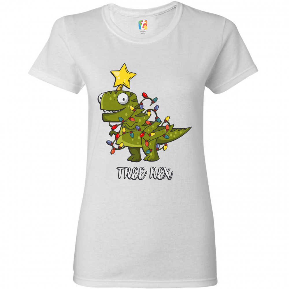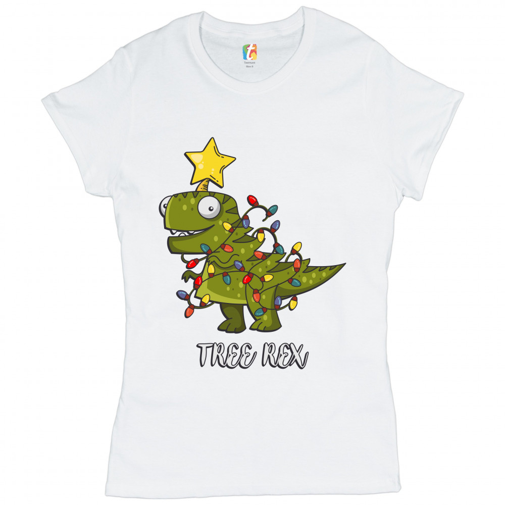 TREE REX t-shirt funny tyronnasaurus rex christmas tree dinosaur women's tee white