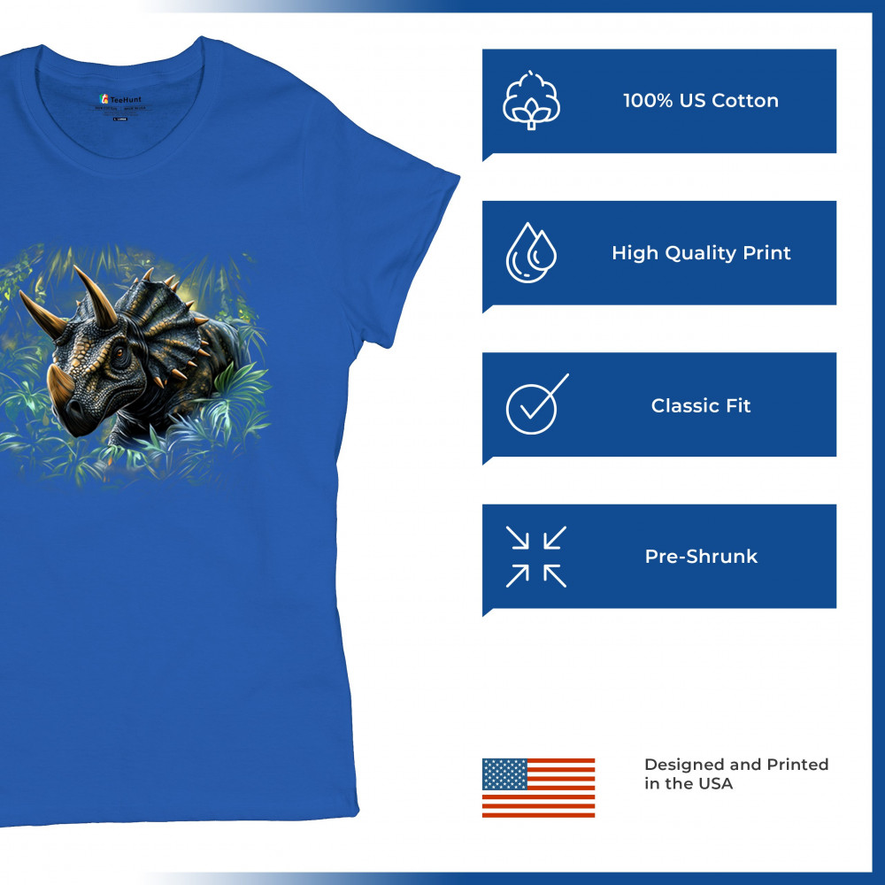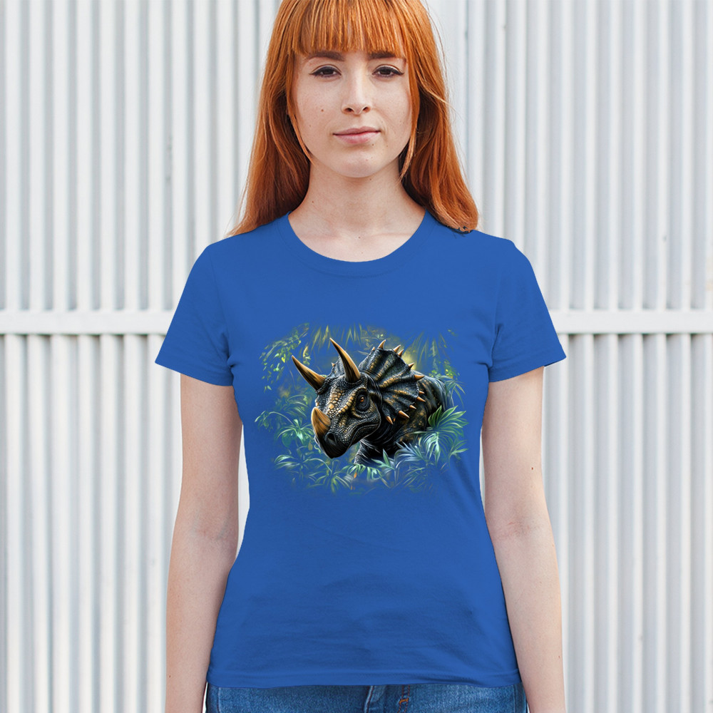 Charge into the past with this vivid triceratops design. Featuring a hyper-detailed horned dinosaur surrounded by jungle leaves, this design is perfect for dino lovers, fossil enthusiasts, and anyone fascinated by prehistoric beasts. Great for Jurassic parties, safari parks, or museum visits, it brings ancient strength to life.