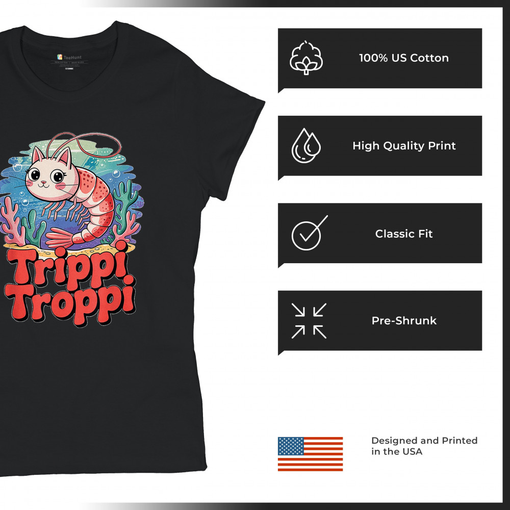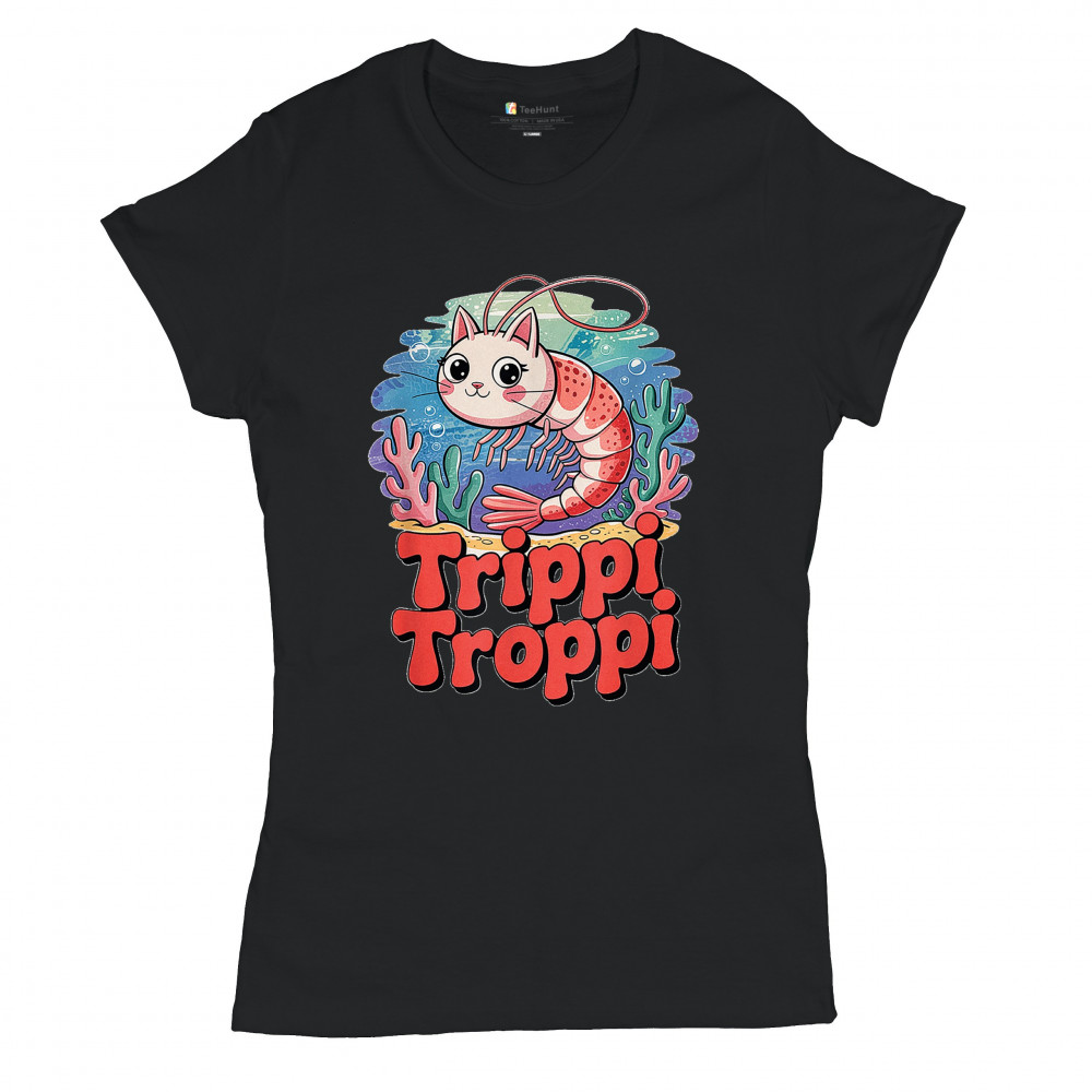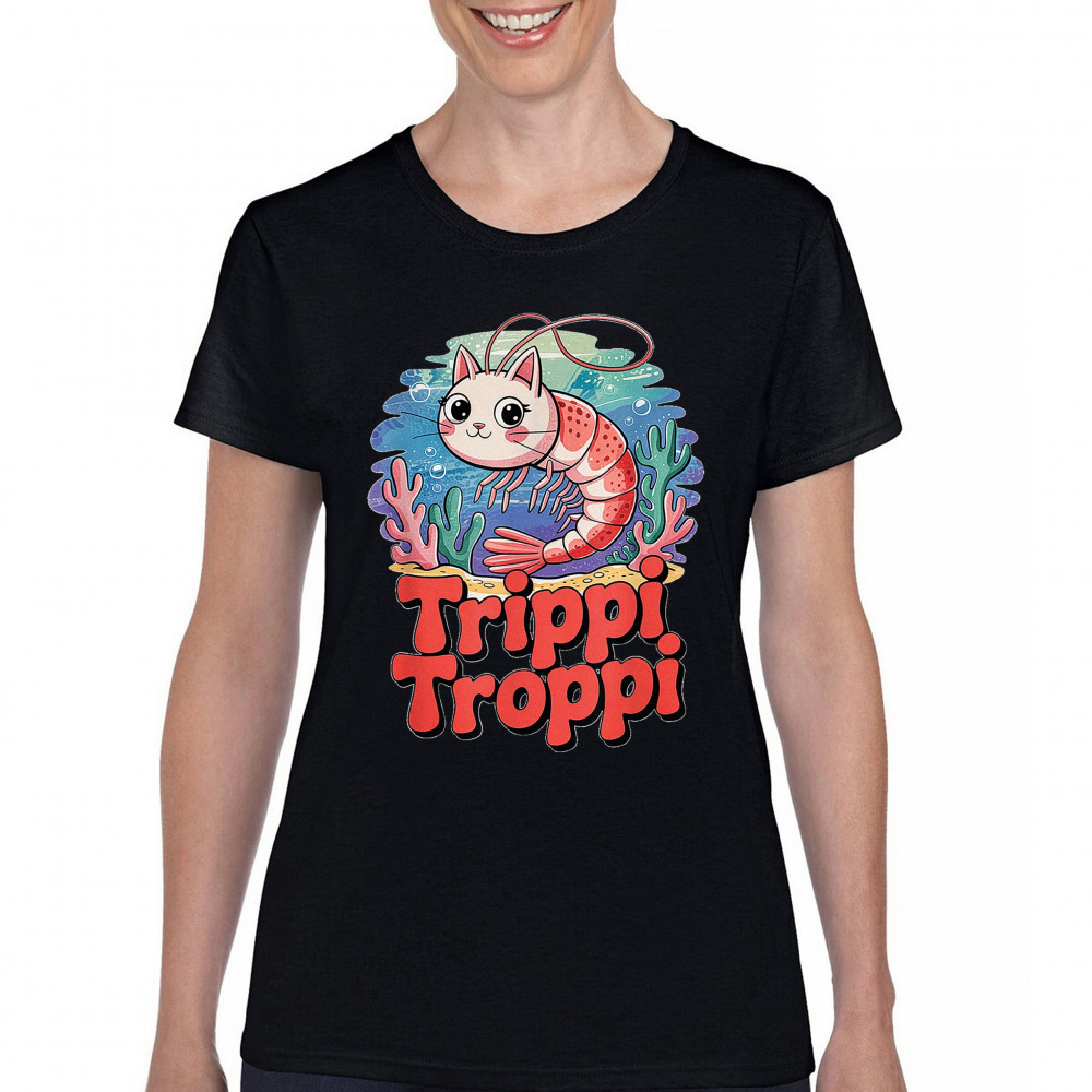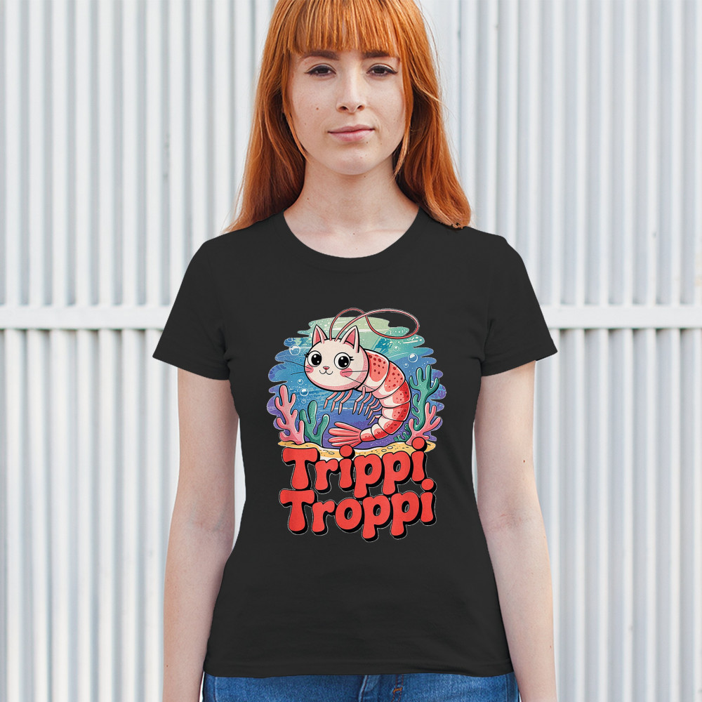 TRIPPI TROPPI SHRIM CAT t-shirt italian brainrot gen z alpha meme women's tee black