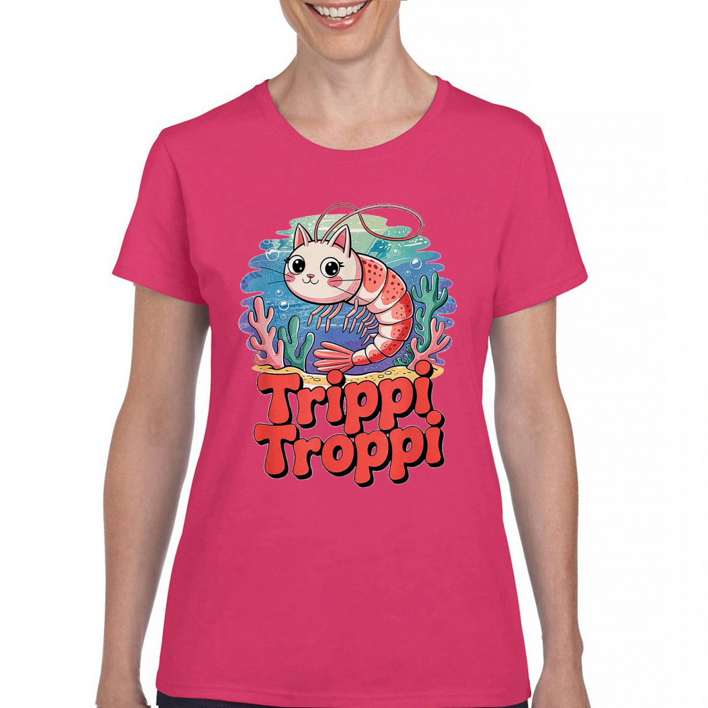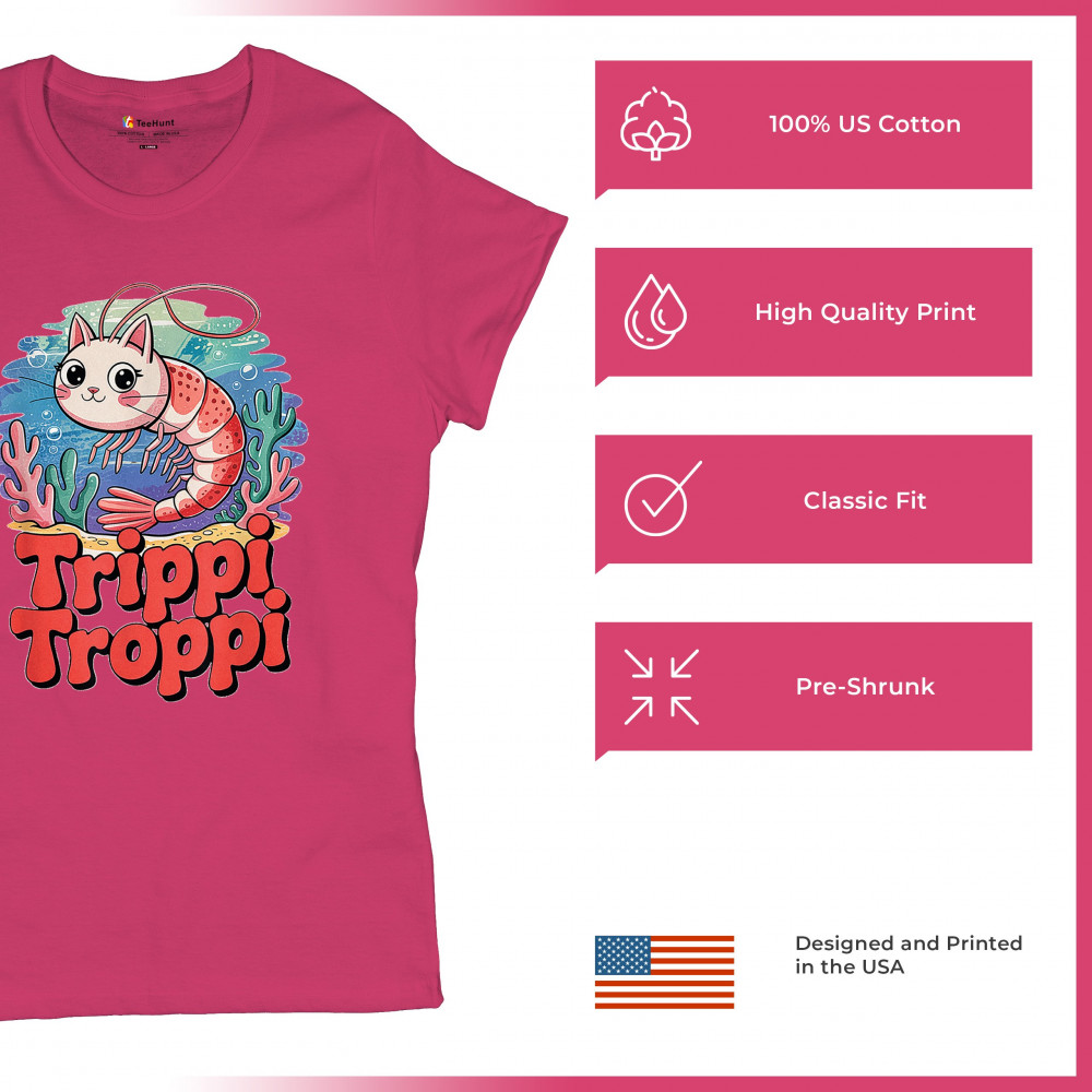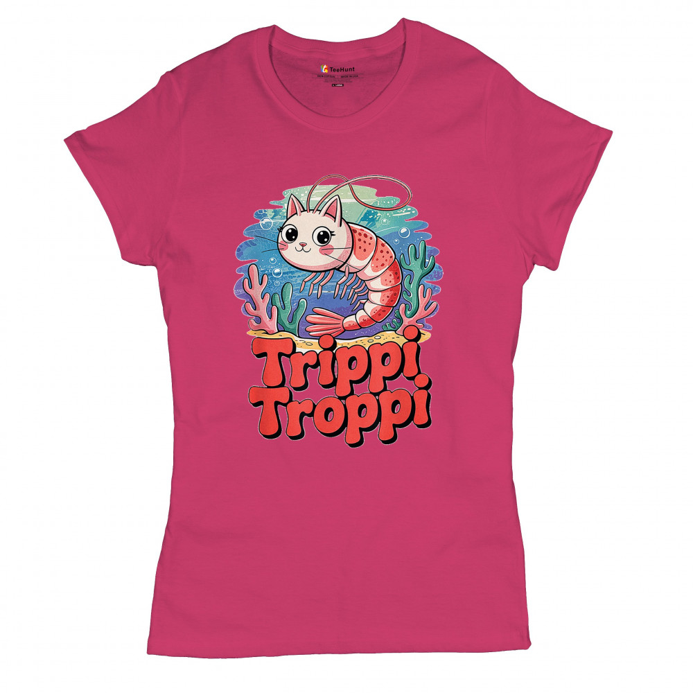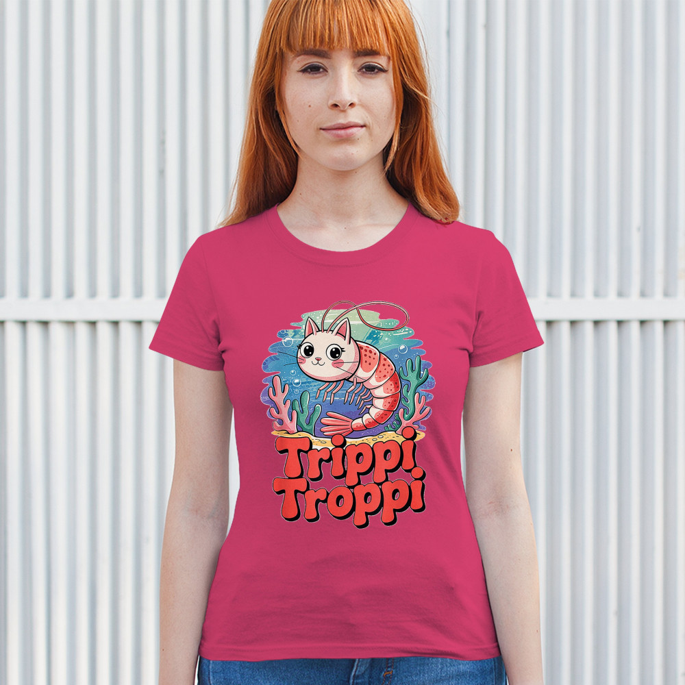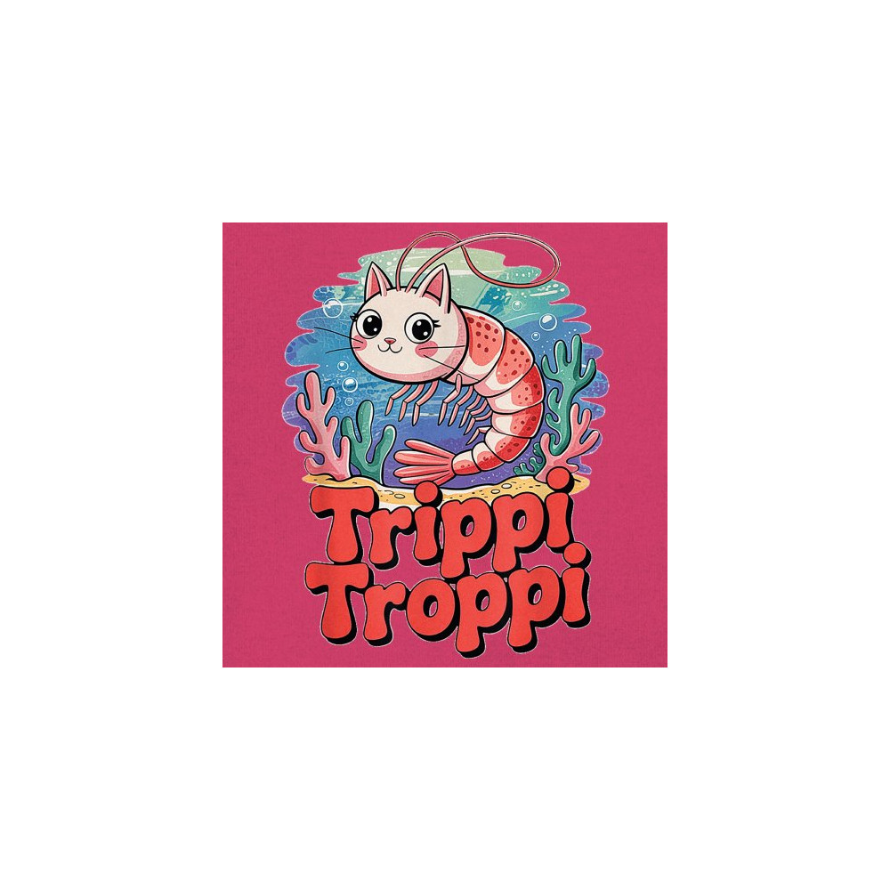 Dive deep into absurdity with Trippi Troppi—a surreal shrimp-cat fusion straight out of Italian Brainrot territory. This design captures cursed animal chaos, weirdcore visuals, TikTok meme culture, and underwater fever dream aesthetics. Made for Gen Z humor addicts, ocean meme fans, and ironic fashion lovers alike.