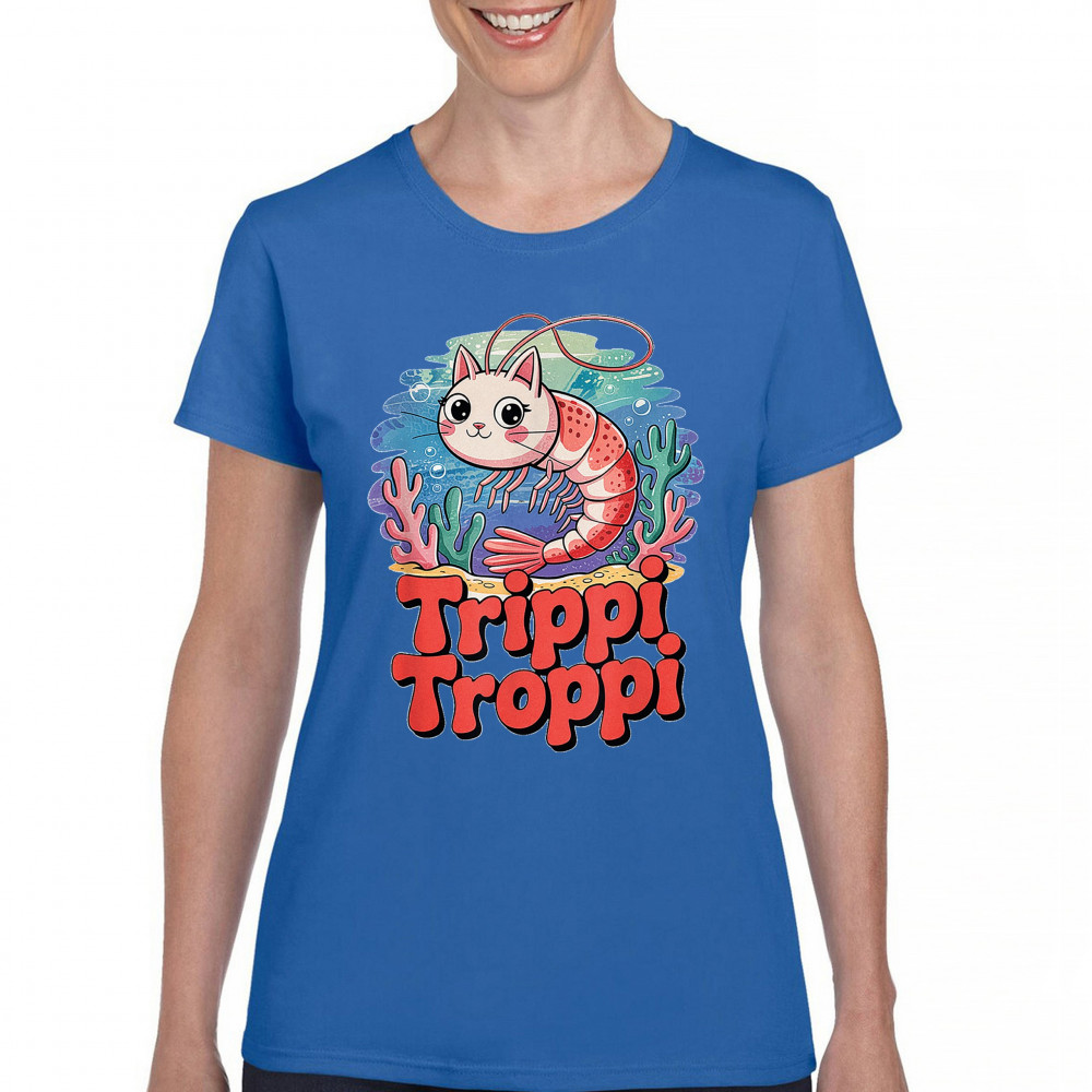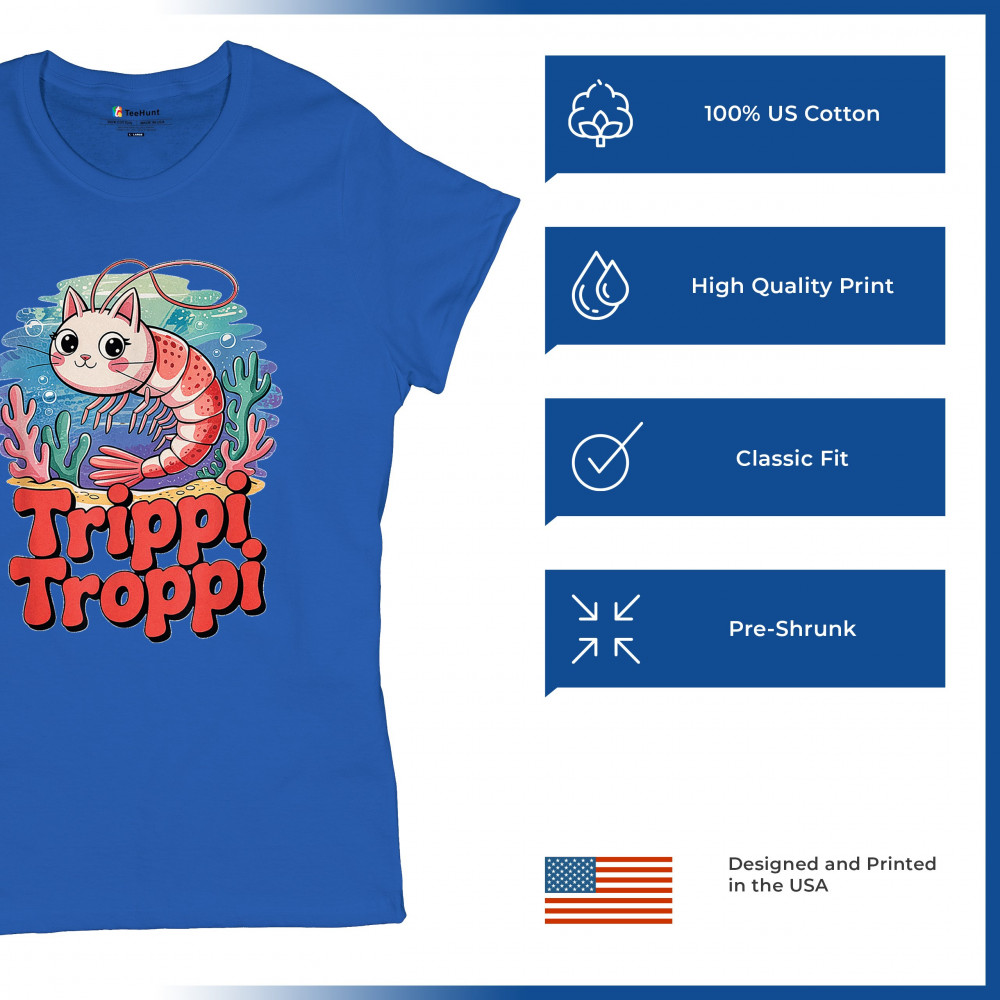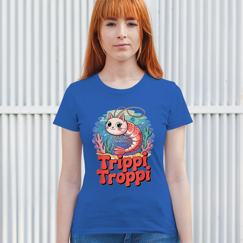 Dive deep into absurdity with Trippi Troppi—a surreal shrimp-cat fusion straight out of Italian Brainrot territory. This design captures cursed animal chaos, weirdcore visuals, TikTok meme culture, and underwater fever dream aesthetics. Made for Gen Z humor addicts, ocean meme fans, and ironic fashion lovers alike.