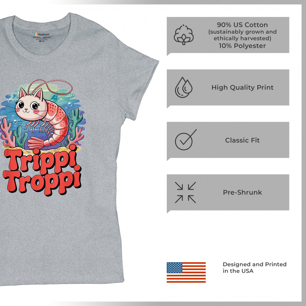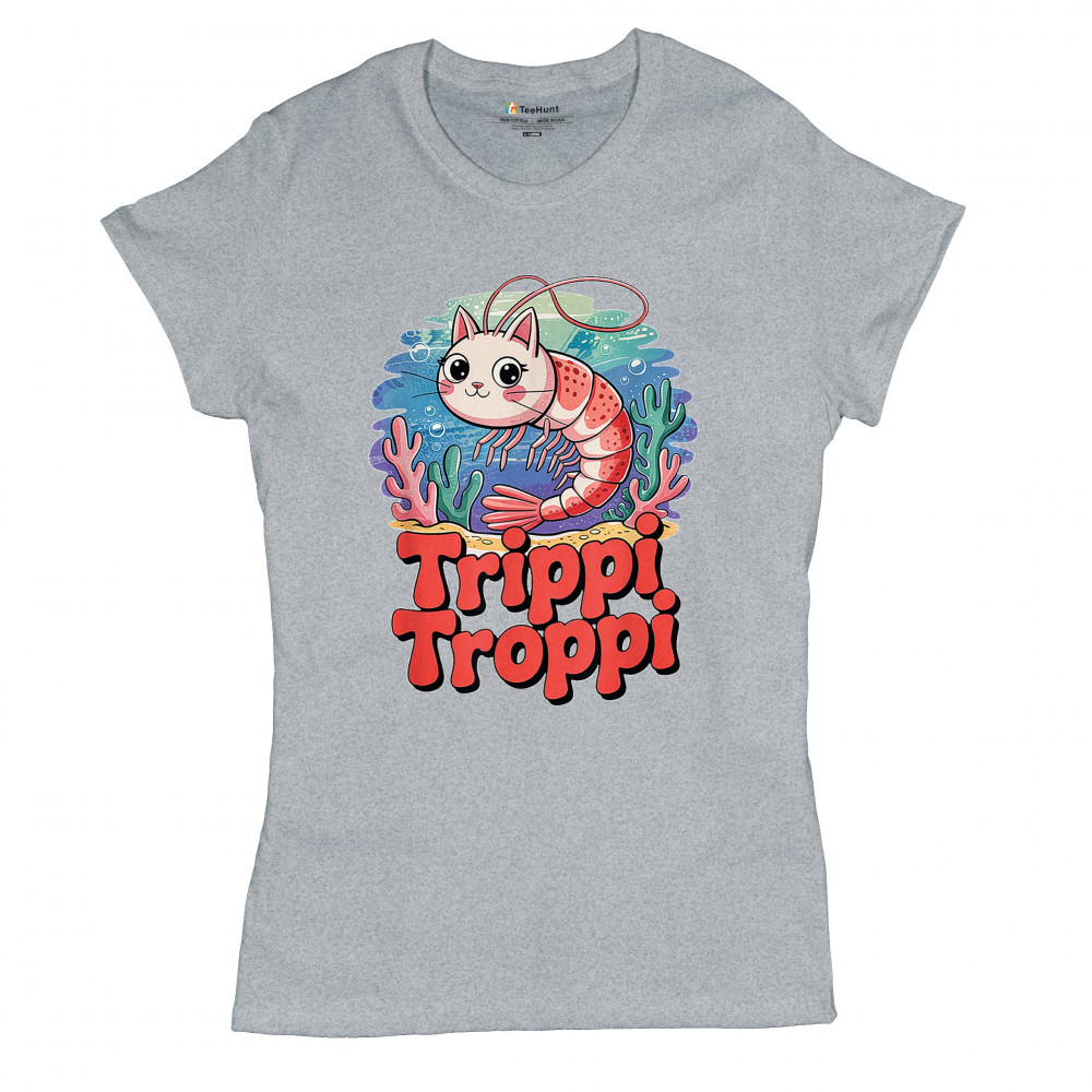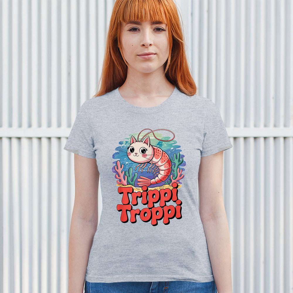 Dive deep into absurdity with Trippi Troppi—a surreal shrimp-cat fusion straight out of Italian Brainrot territory. This design captures cursed animal chaos, weirdcore visuals, TikTok meme culture, and underwater fever dream aesthetics. Made for Gen Z humor addicts, ocean meme fans, and ironic fashion lovers alike.