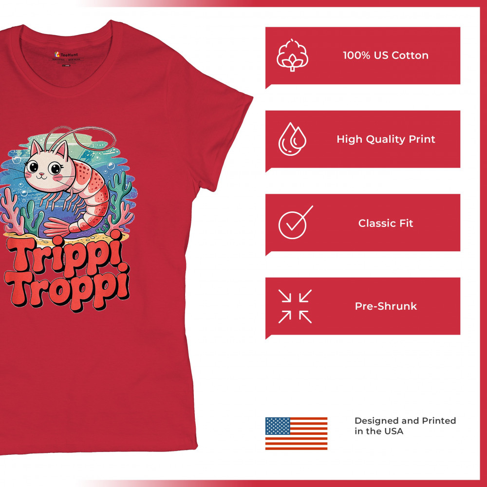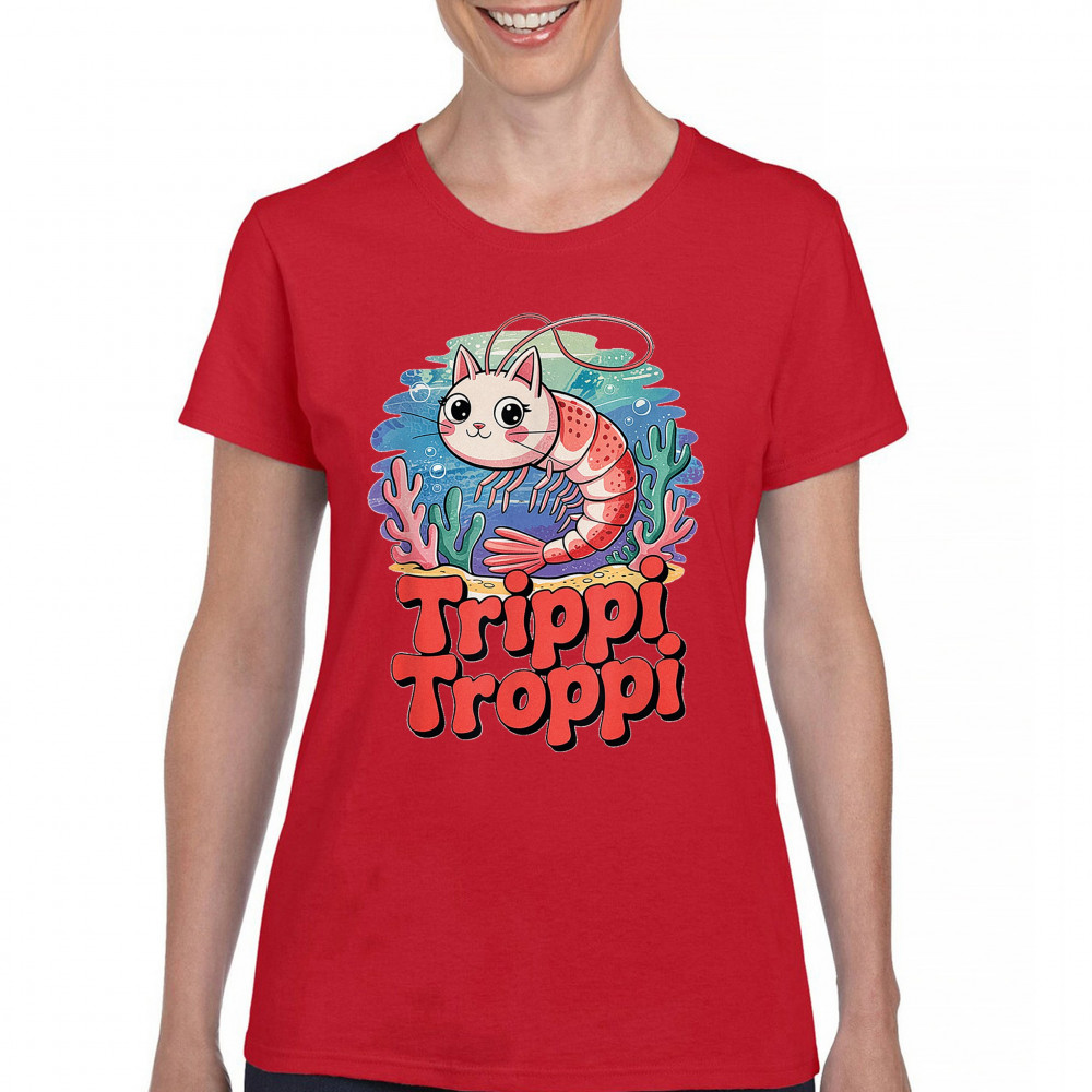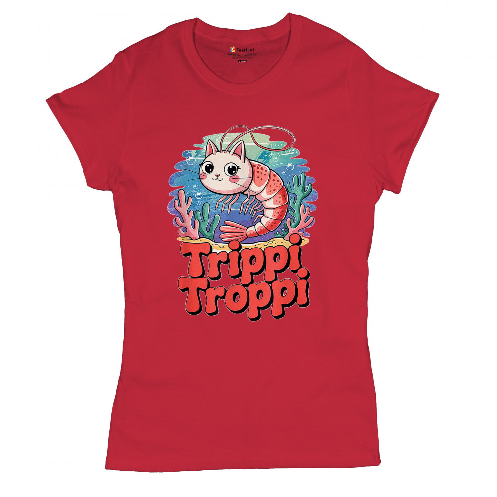 Dive deep into absurdity with Trippi Troppi—a surreal shrimp-cat fusion straight out of Italian Brainrot territory. This design captures cursed animal chaos, weirdcore visuals, TikTok meme culture, and underwater fever dream aesthetics. Made for Gen Z humor addicts, ocean meme fans, and ironic fashion lovers alike.