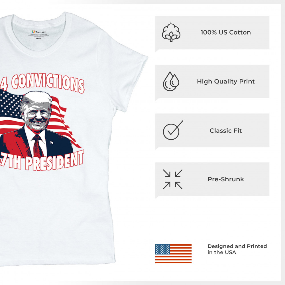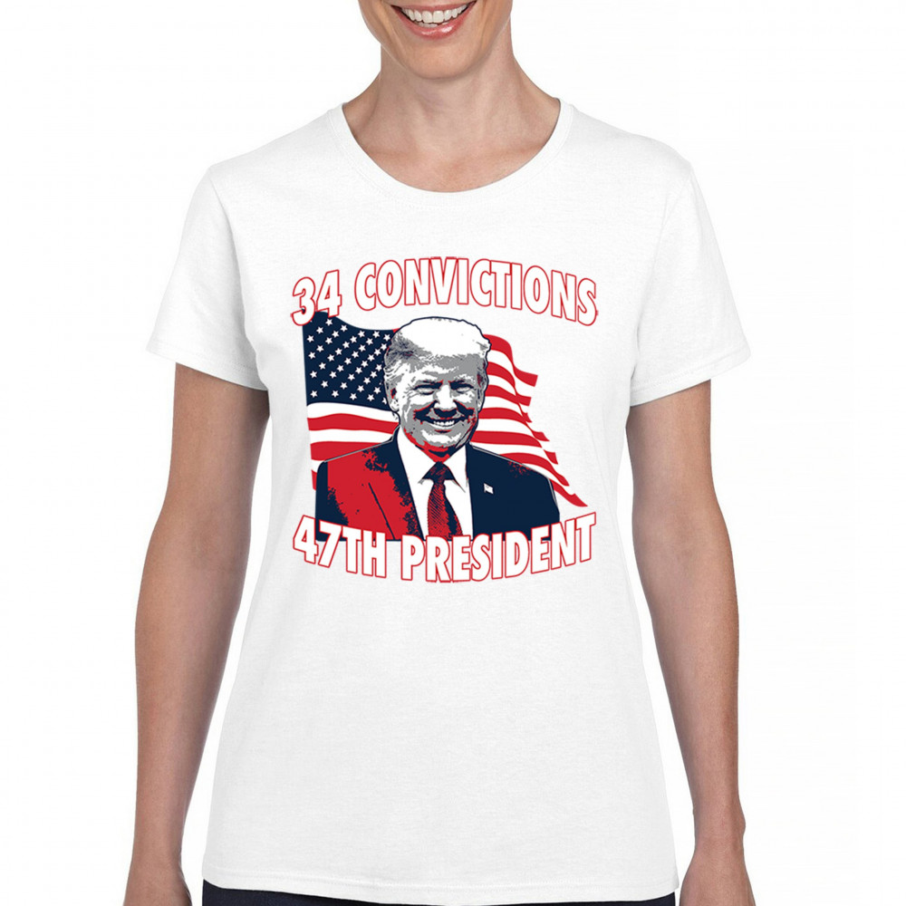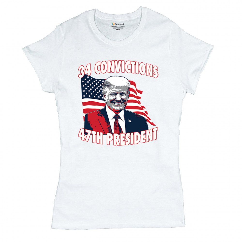 Show your support for Trump's 2024 campaign with the "34 Convictions, 47th President" design. Perfect for rallies, patriotic events, and conservative gatherings.