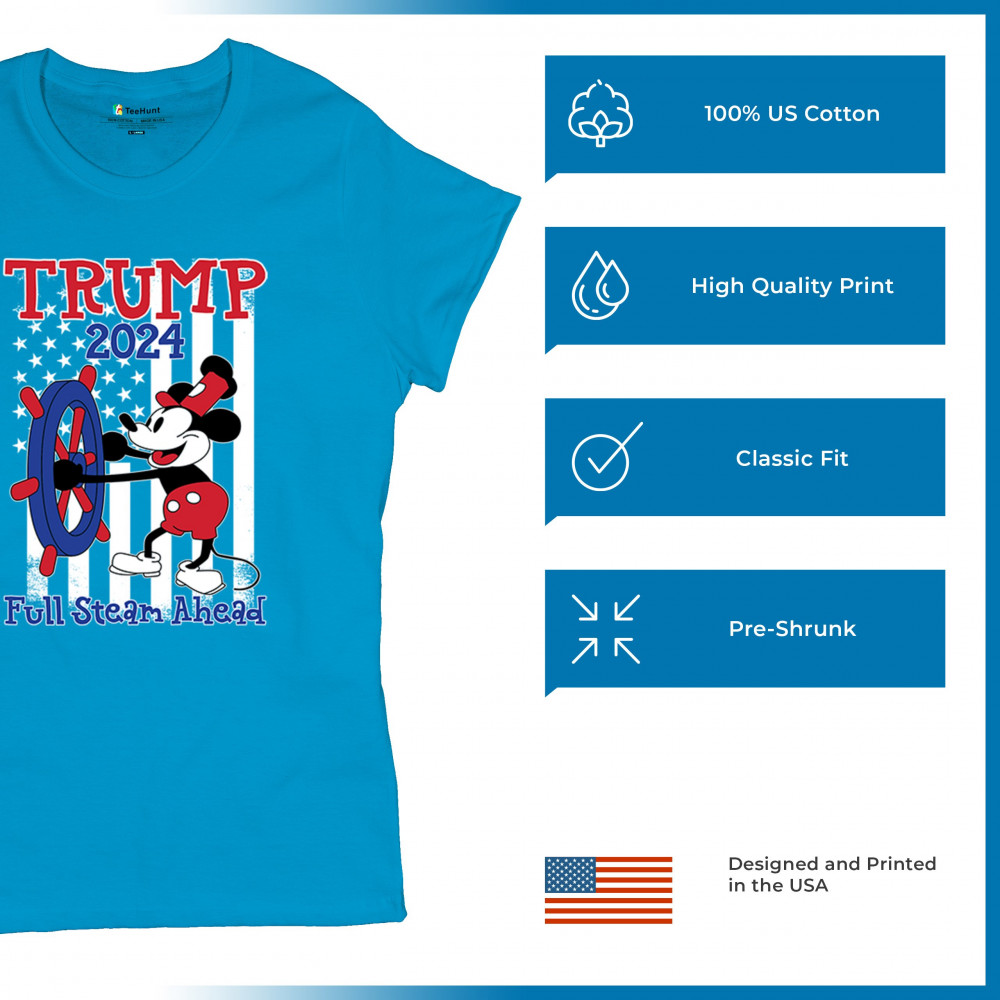 Show your support for Trump with the "Full Steam Ahead" design, symbolizing conservative values and America's resilience. Perfect for rallies and daily wear.