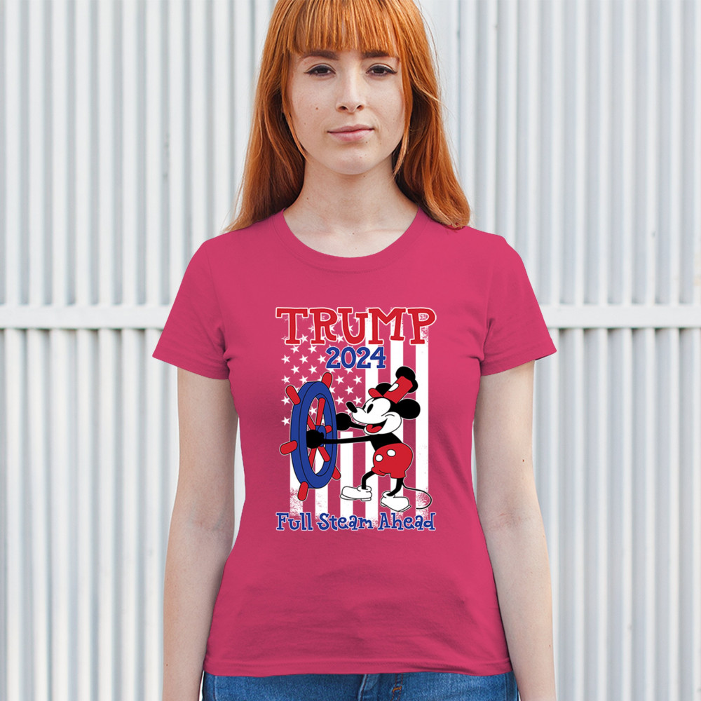 Show your support for Trump with the "Full Steam Ahead" design, symbolizing conservative values and America's resilience. Perfect for rallies and daily wear.