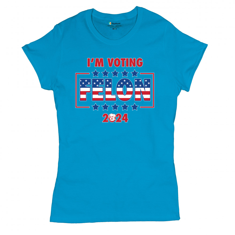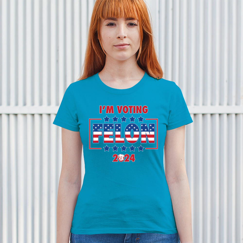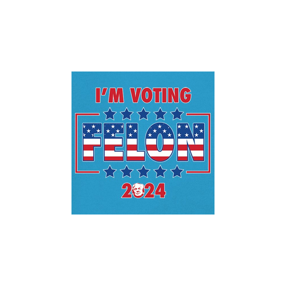 Stand out and express your political beliefs with our "I'm Voting Felon 2024" design. This bold and eye-catching design is perfect for conservative patriots and Trump supporters. Featuring a vibrant American flag motif, it’s ideal for rallies, political events, and daily wear. Show your commitment to America First and your defiance against opposition. This design is a perfect gift for like-minded friends and family who support the same values and are proud to show it.