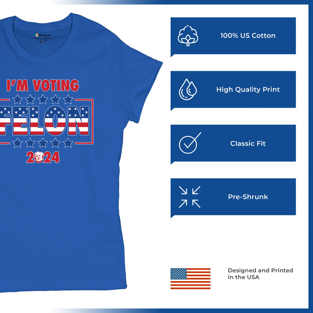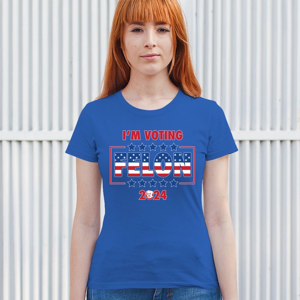 Stand out and express your political beliefs with our "I'm Voting Felon 2024" design. This bold and eye-catching design is perfect for conservative patriots and Trump supporters. Featuring a vibrant American flag motif, it’s ideal for rallies, political events, and daily wear. Show your commitment to America First and your defiance against opposition. This design is a perfect gift for like-minded friends and family who support the same values and are proud to show it.