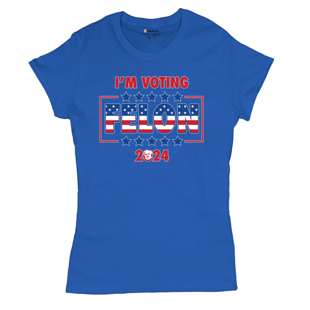 Show your support with the "I'm Voting Felon 2024" design, perfect for conservative patriots and Trump supporters. Featuring an American flag motif.