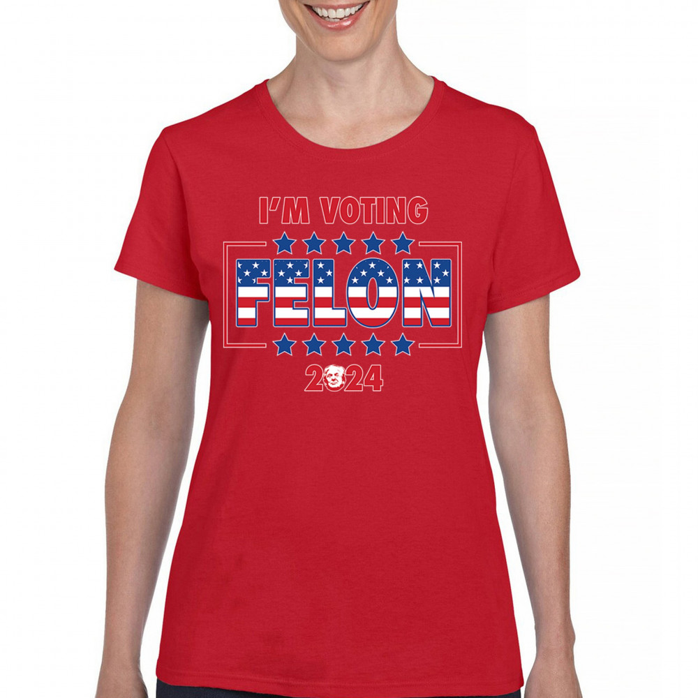 Show your support with the "I'm Voting Felon 2024" design, perfect for conservative patriots and Trump supporters. Featuring an American flag motif.